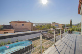 A l'ETAGE, actuellement trois chambres climatisées (12.50m², 13.20m² et 13.50m²) , une belle salle de bains avec baignoire et douche italienne, et une jolie terrasse.