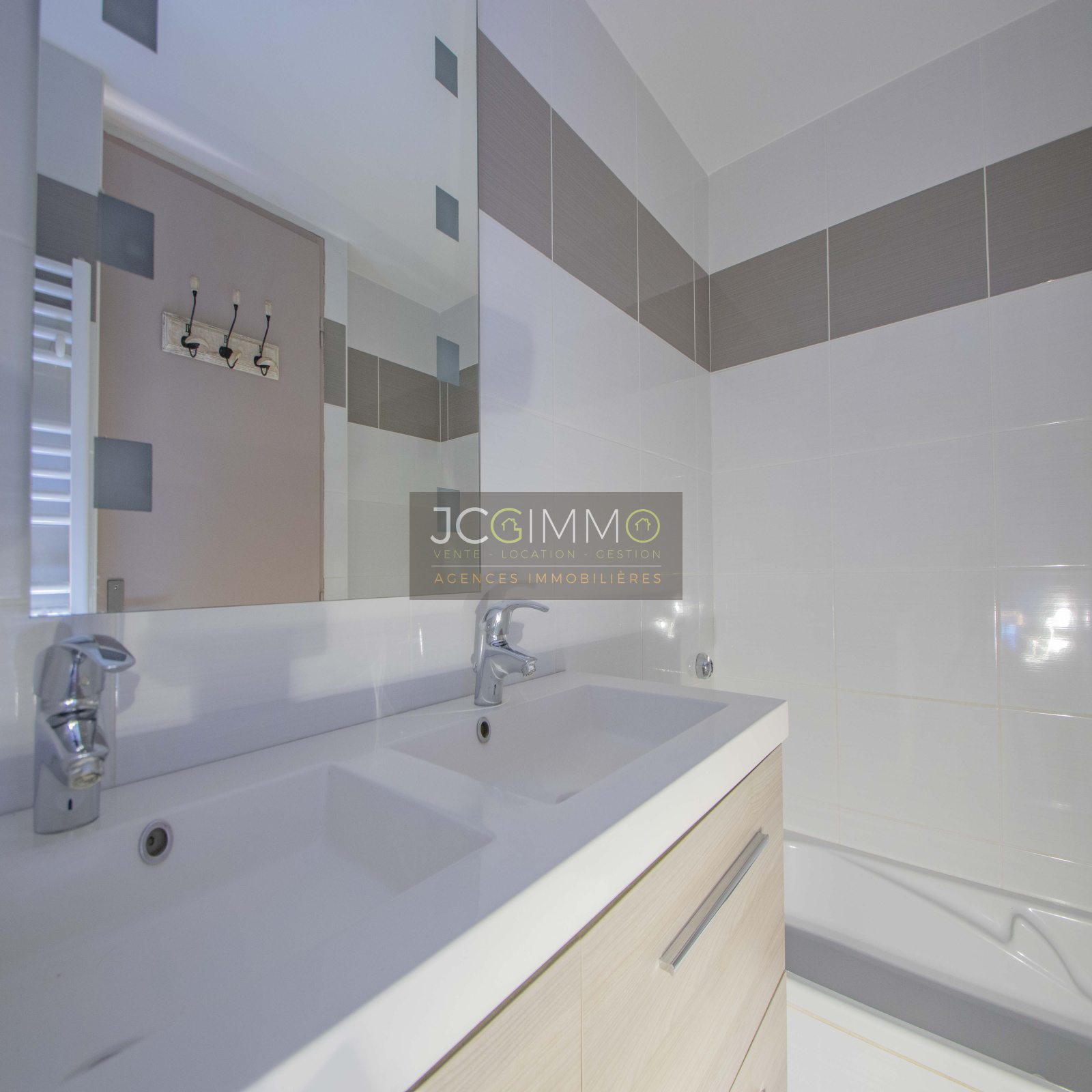 Elle se compose d’un salon/séjour très lumineux avec cuisine américaine ouverte vers le salon, 3 chambres climatisées avec placards, salle de bains avec baignoire et douche, 2 WC.