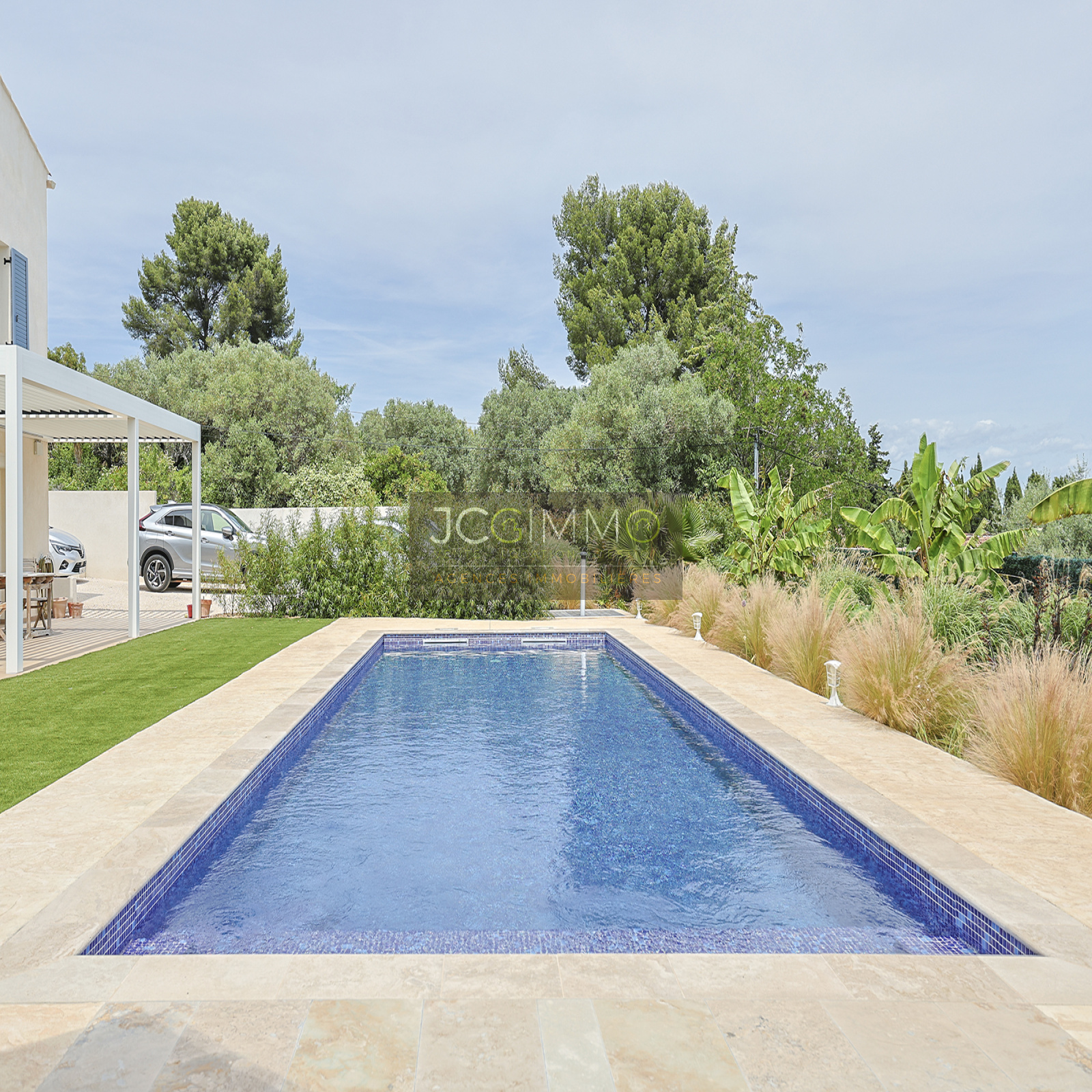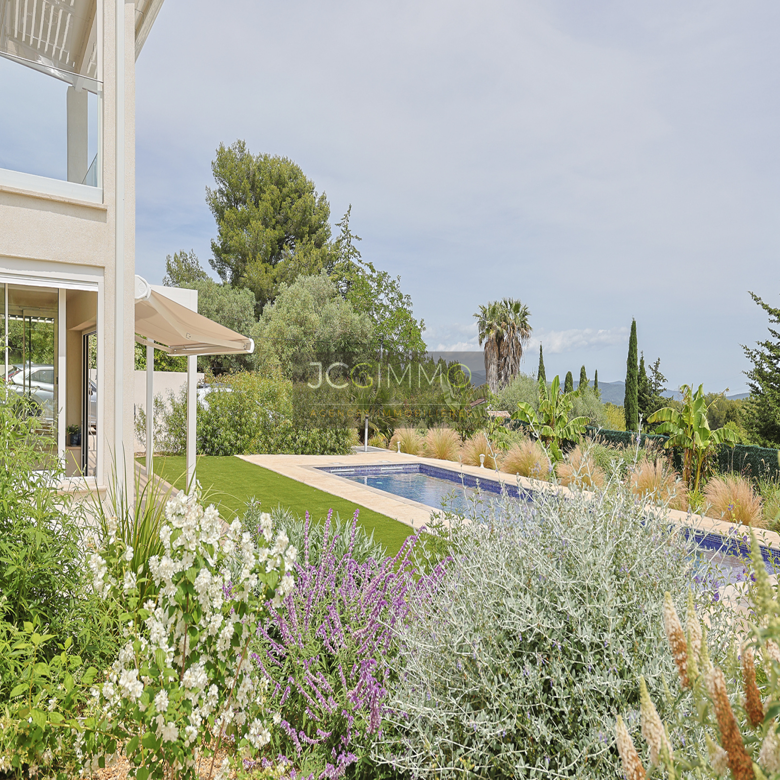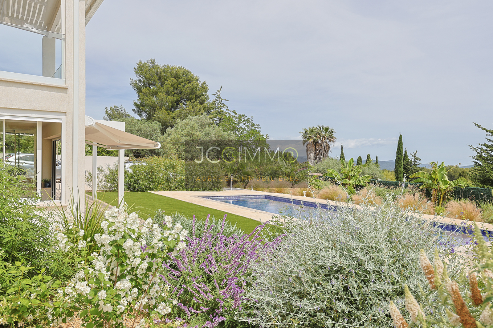 Le terrain de 2189 m² PLAT est entièrement clos avec portail motorisé. Il est totalement plat, décoré avec goût et arboré de multiples essences méditerranéennes. Il est agrémenté d'une magnifique piscine (neuve) de construction traditionnelle avec traitement automatisé (au sel) et chauffée par pompe à chaleur.