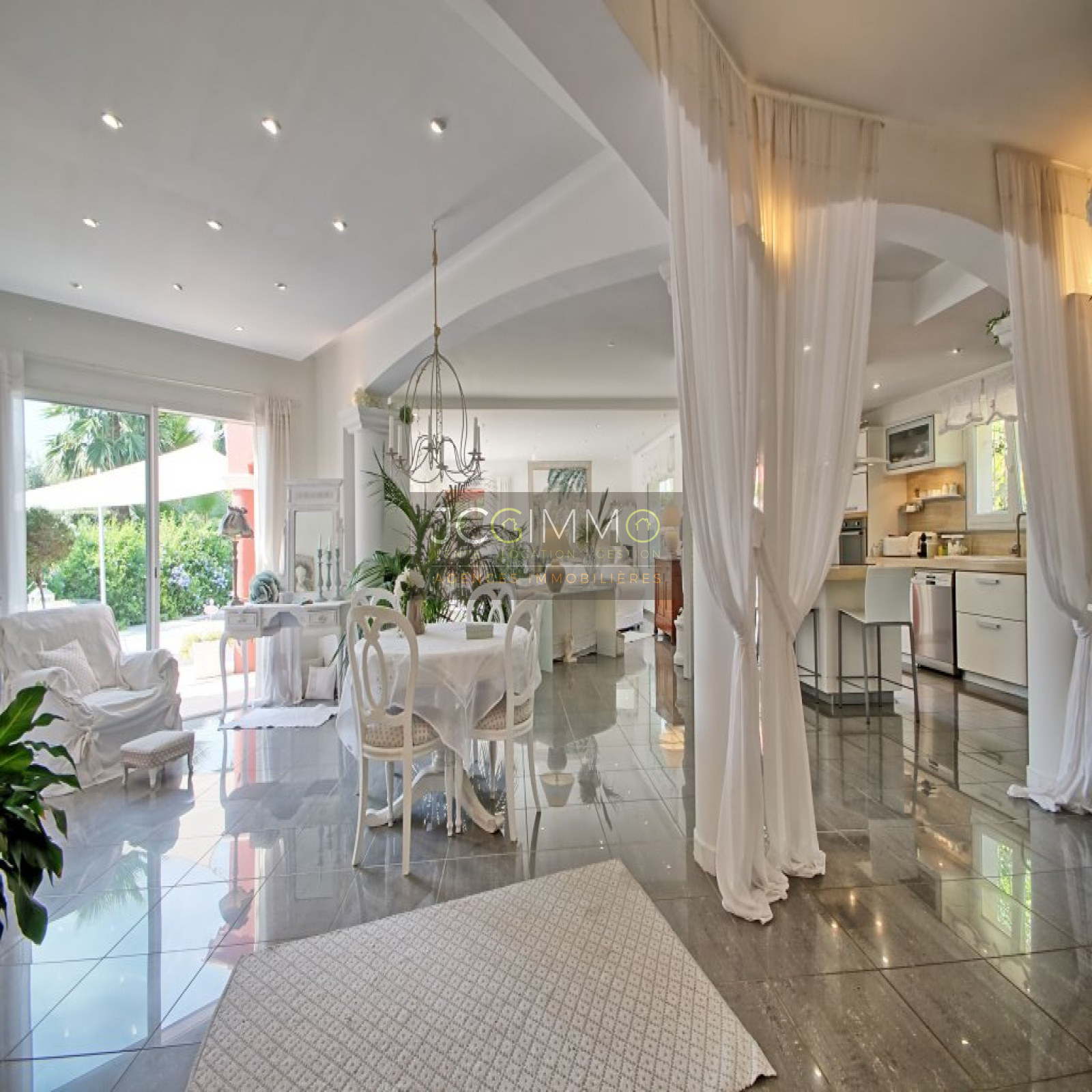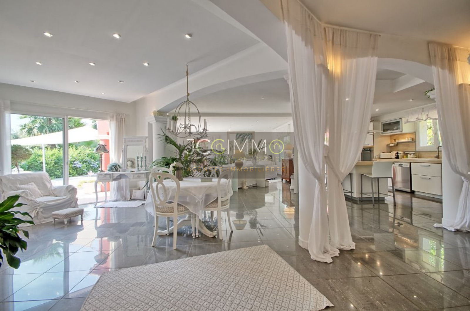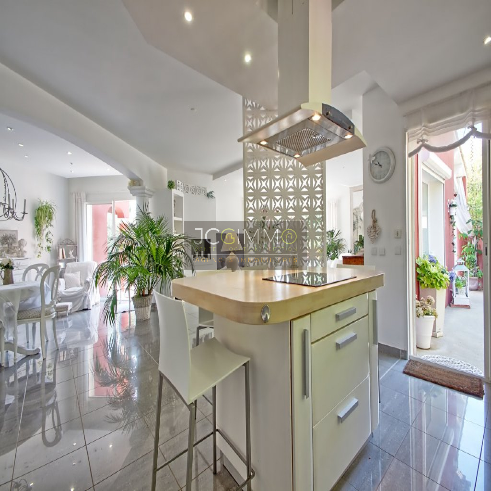 Au rez de chaussée: 3 suites parentales, une belle cuisine aménagée ouverte sur un grand salon/séjour, un espace bureau semi-ouvert, buanderie et wc séparé. Grande terrasse.