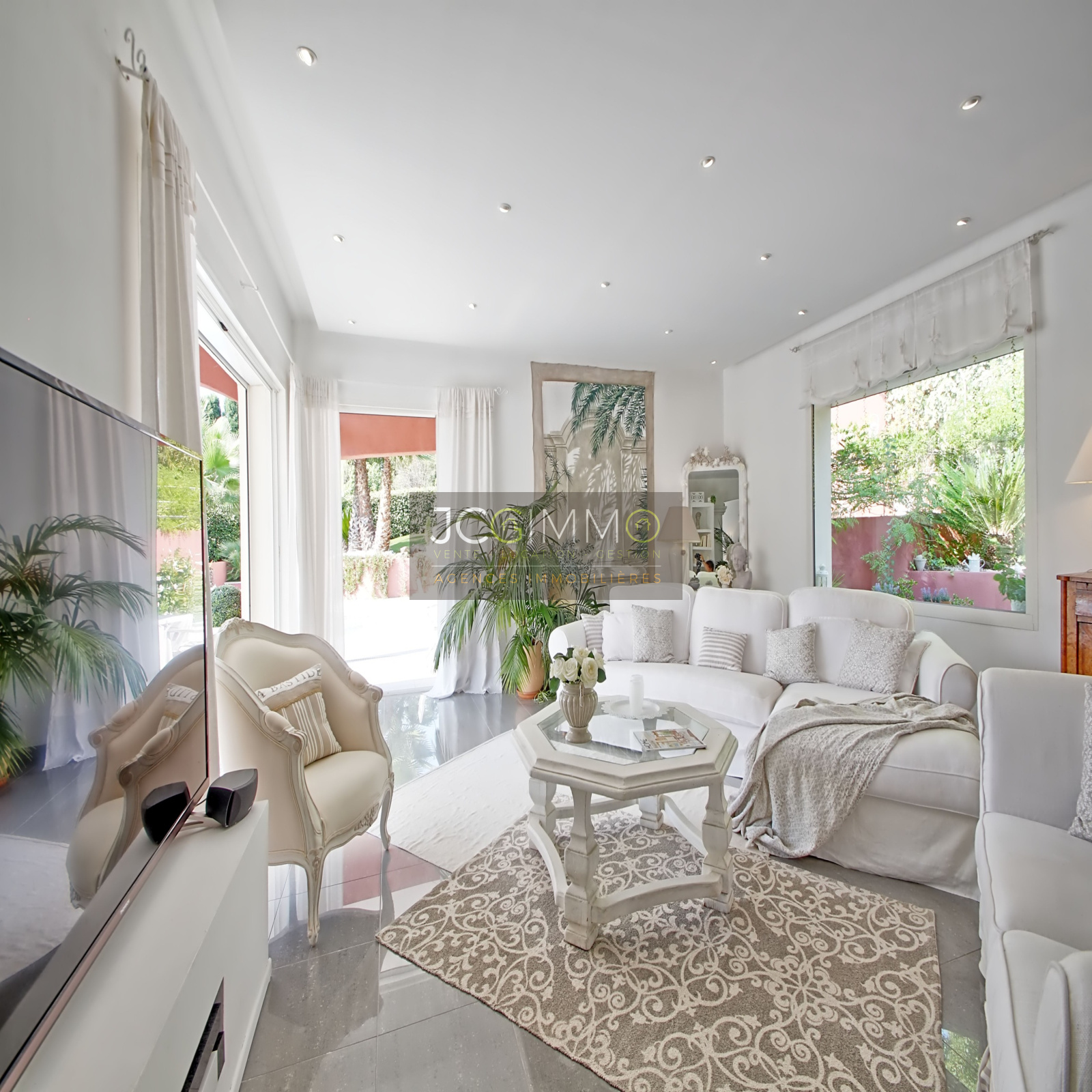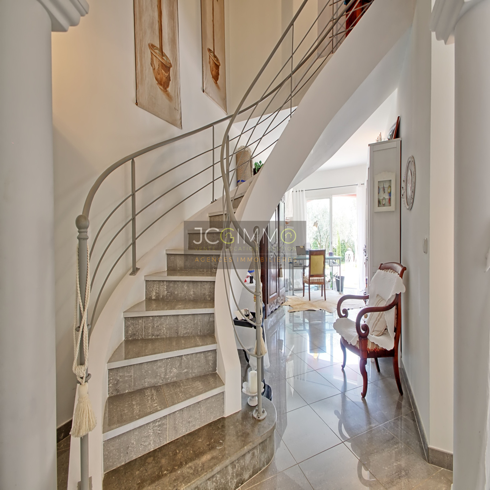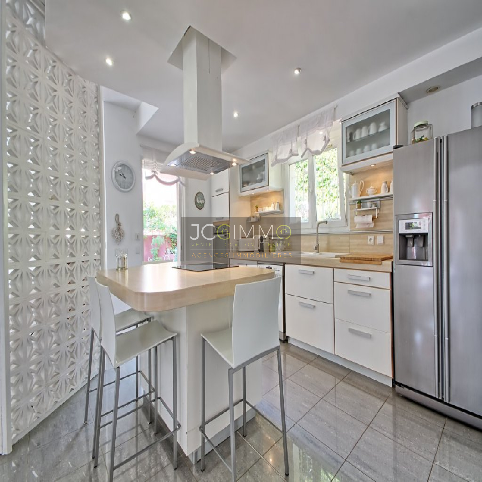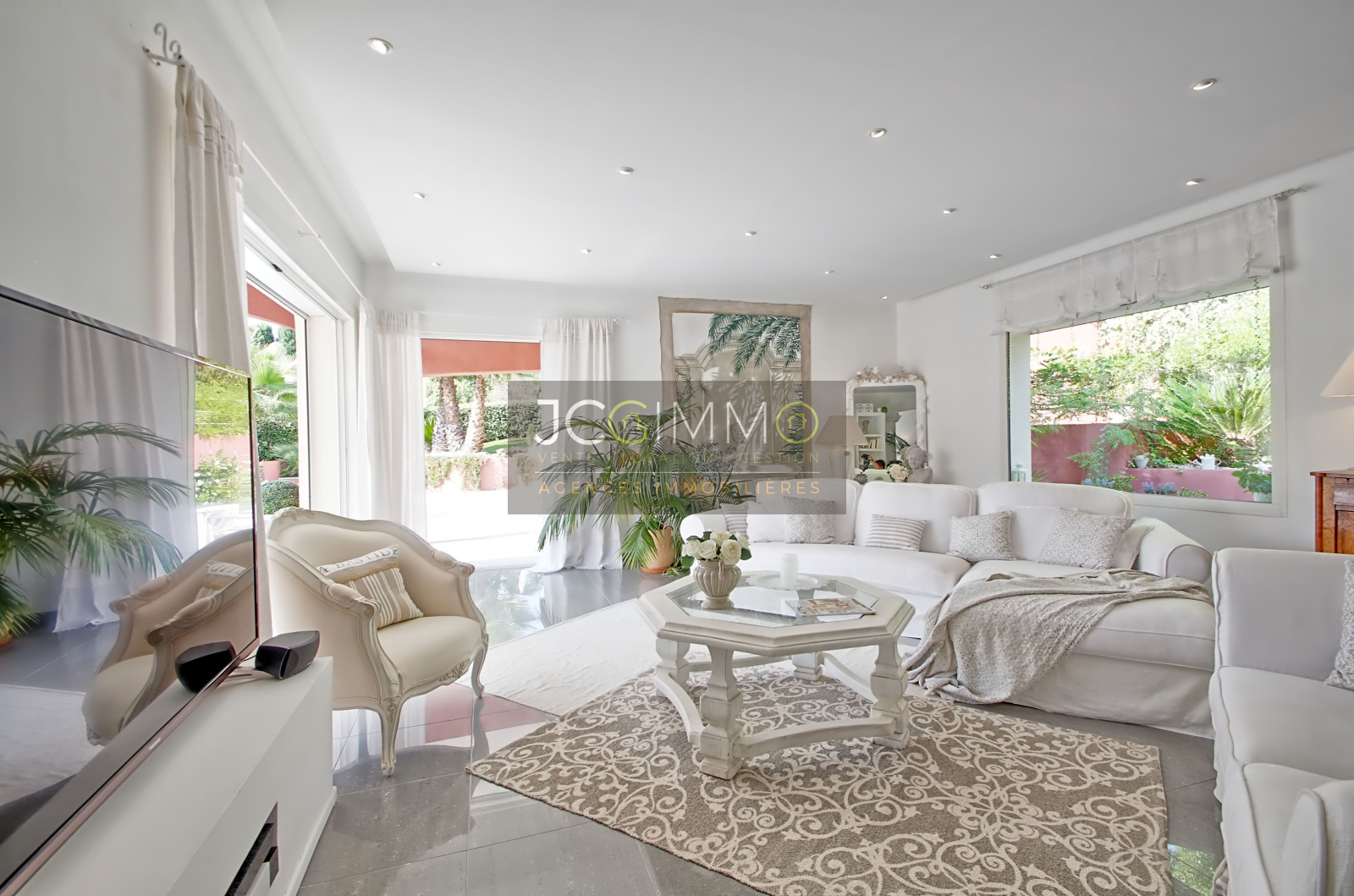 Au rez de chaussée: 3 suites parentales, une belle cuisine aménagée ouverte sur un grand salon/séjour, un espace bureau semi-ouvert, buanderie et wc séparé. Grande terrasse.