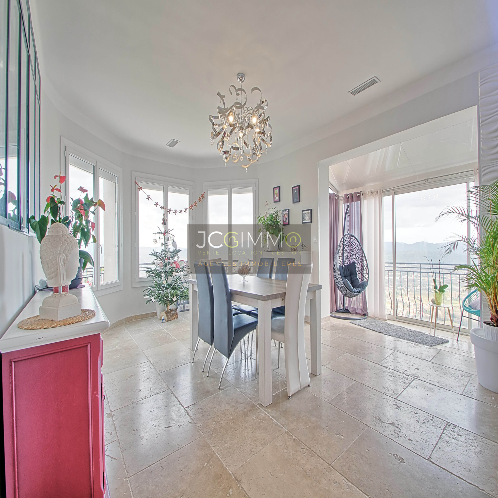 Nous vous présentons cette superbe maison individuelle plein SUD d'environ 178m² habitables, rénovée avec des matériaux de qualité, nichée sur les hauteurs de La Farlède, sur la colline de Solliès Ville.