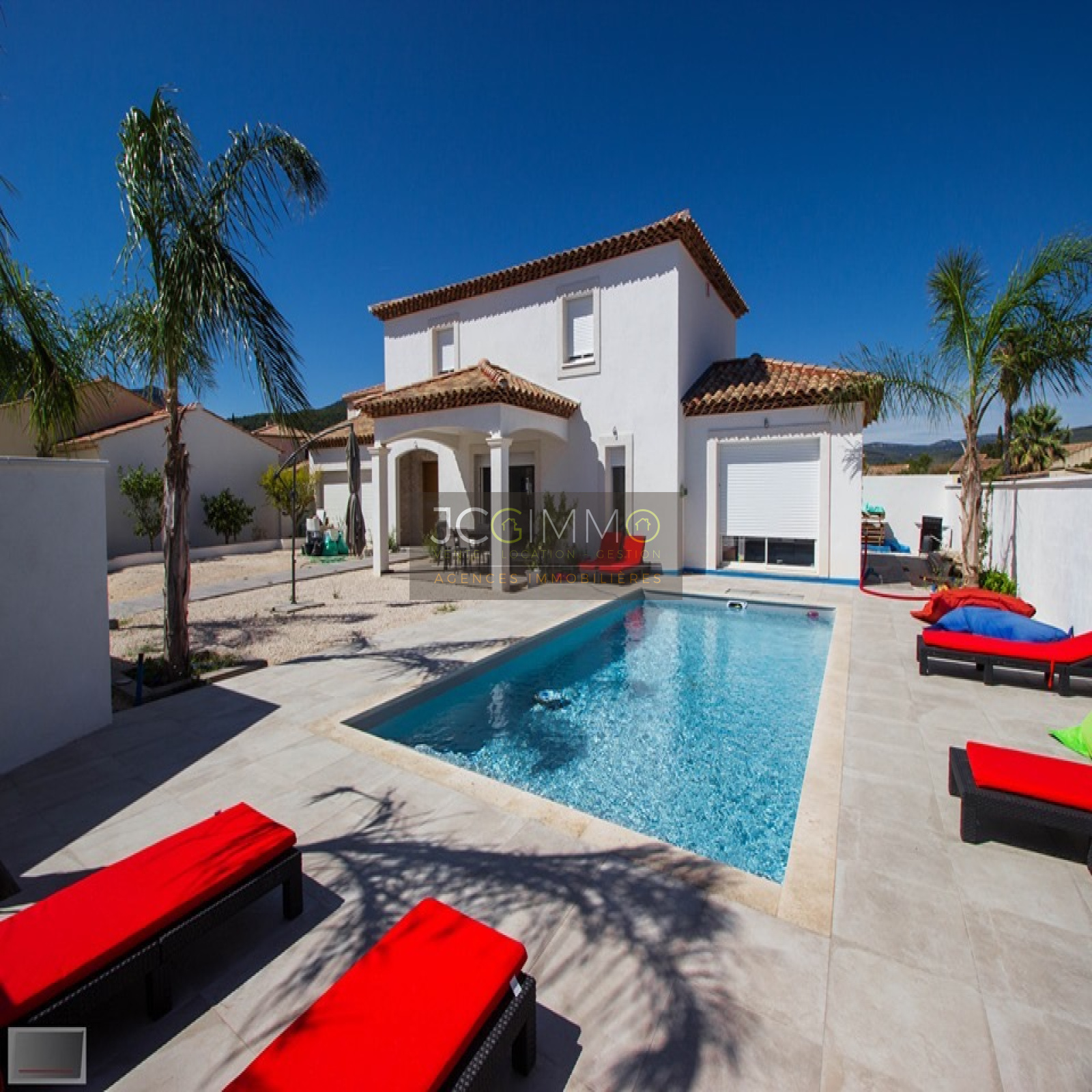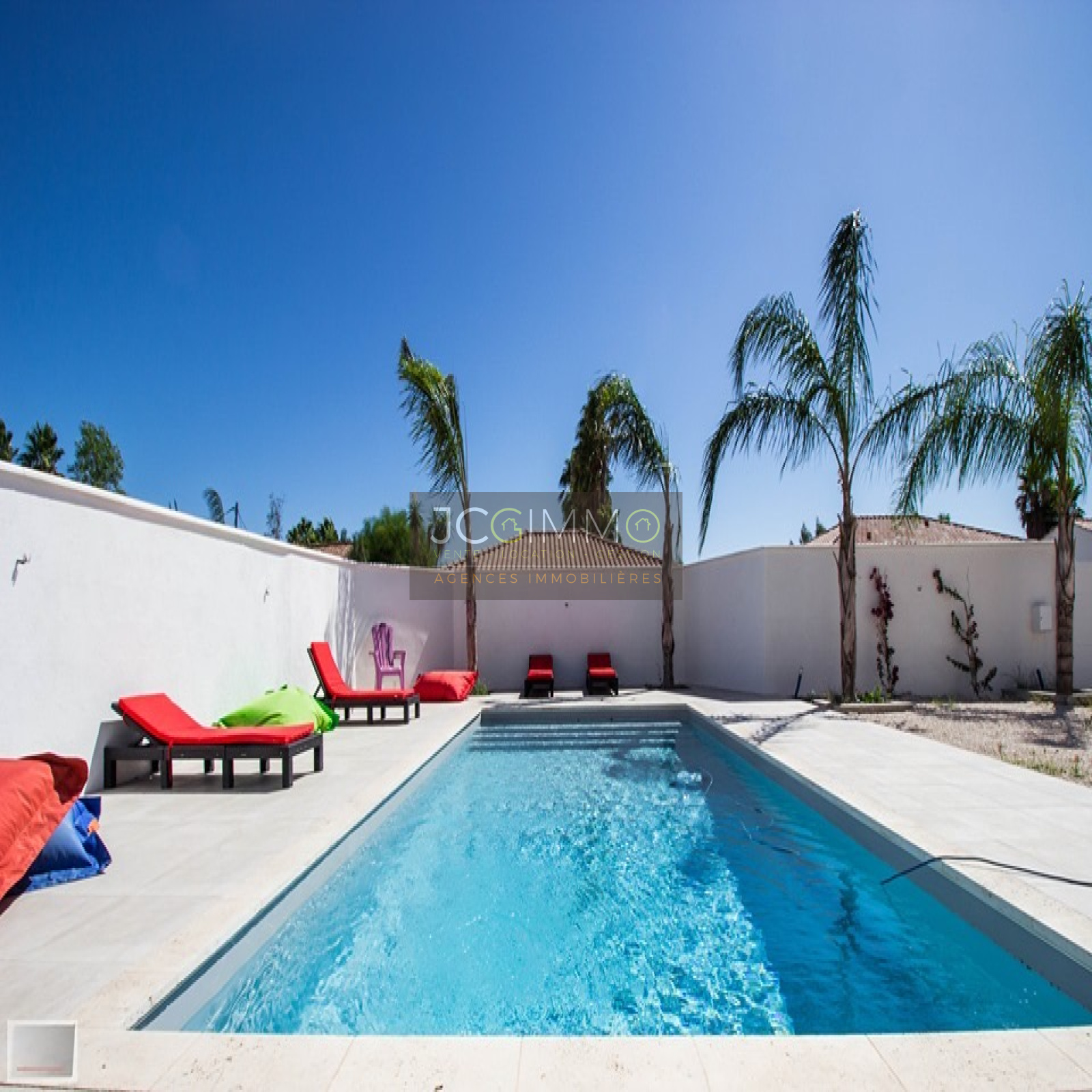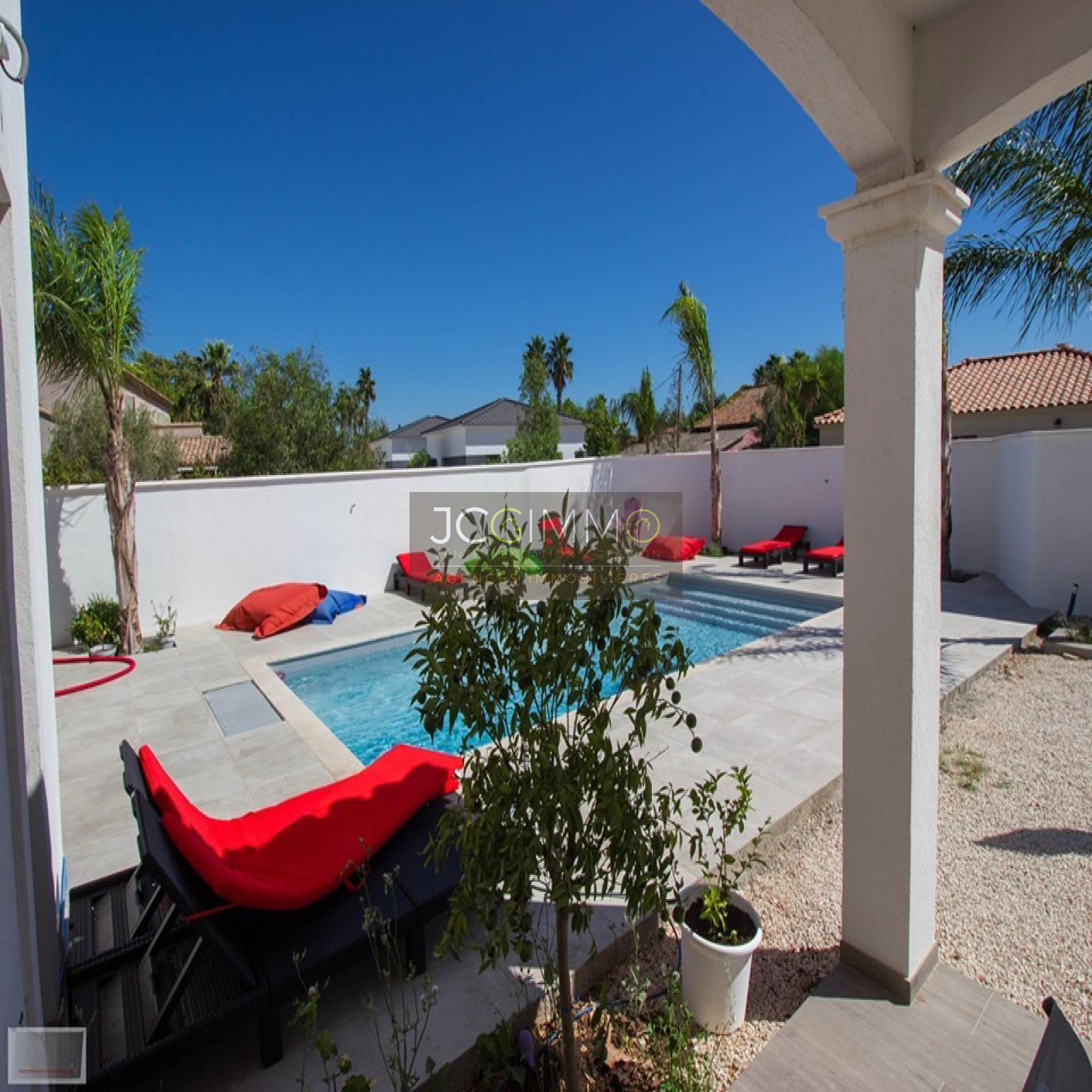 Nous vous présentons cette superbe maison individuelle NEUVE plein SUD d'environ 176m² habitables, construite en 2018/2019 par des artisans (pas de constructeur), avec de très belles prestations dont la climatisation gainable, carrelage 120x120, une superbe dressing et un immense salon, le tout sur un terrain plat de 600m² accueillant une formidable piscine de 8m x 4m.