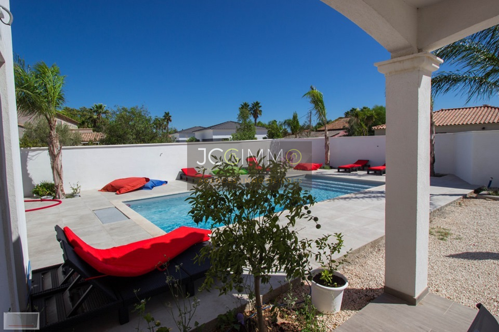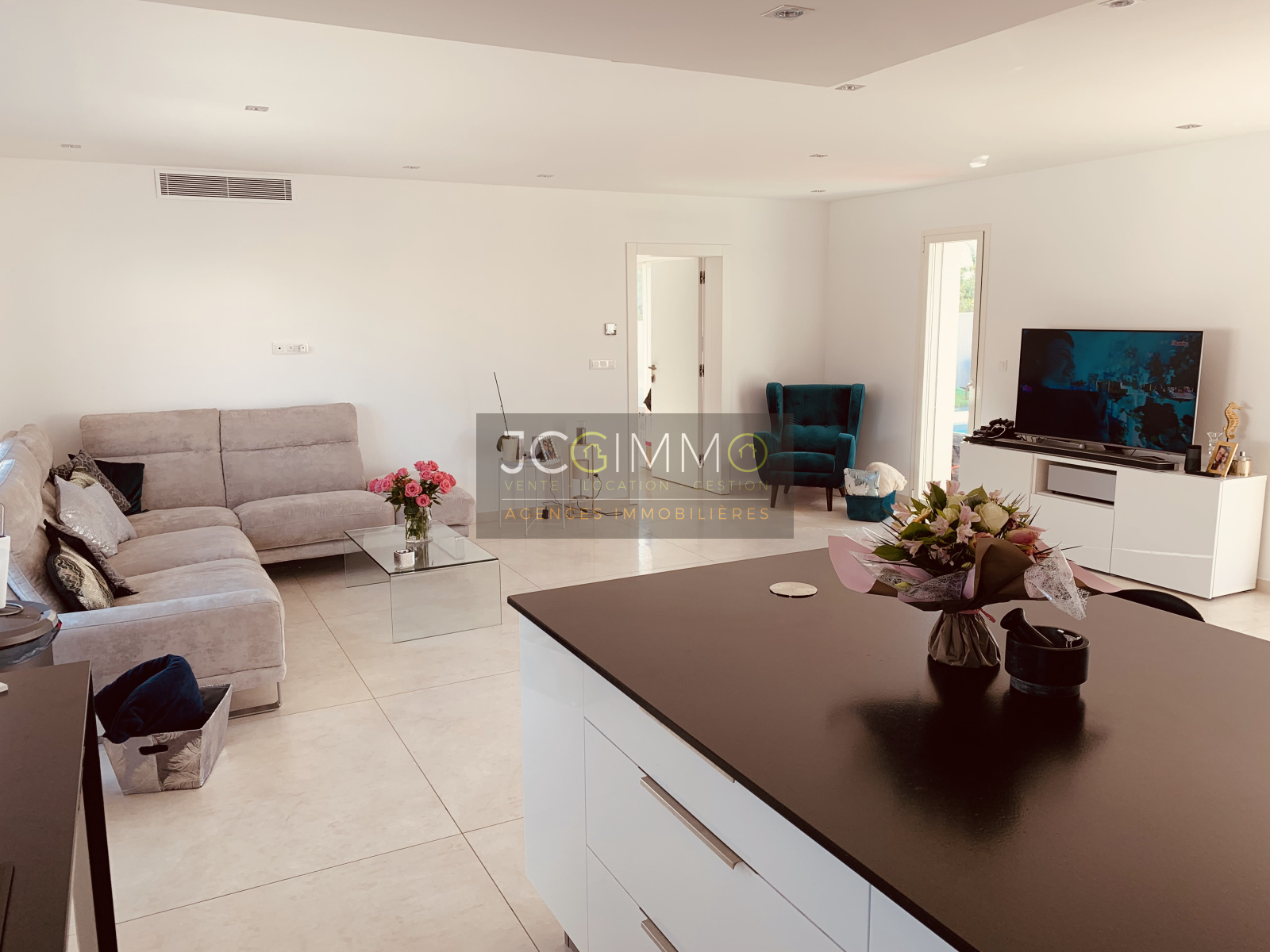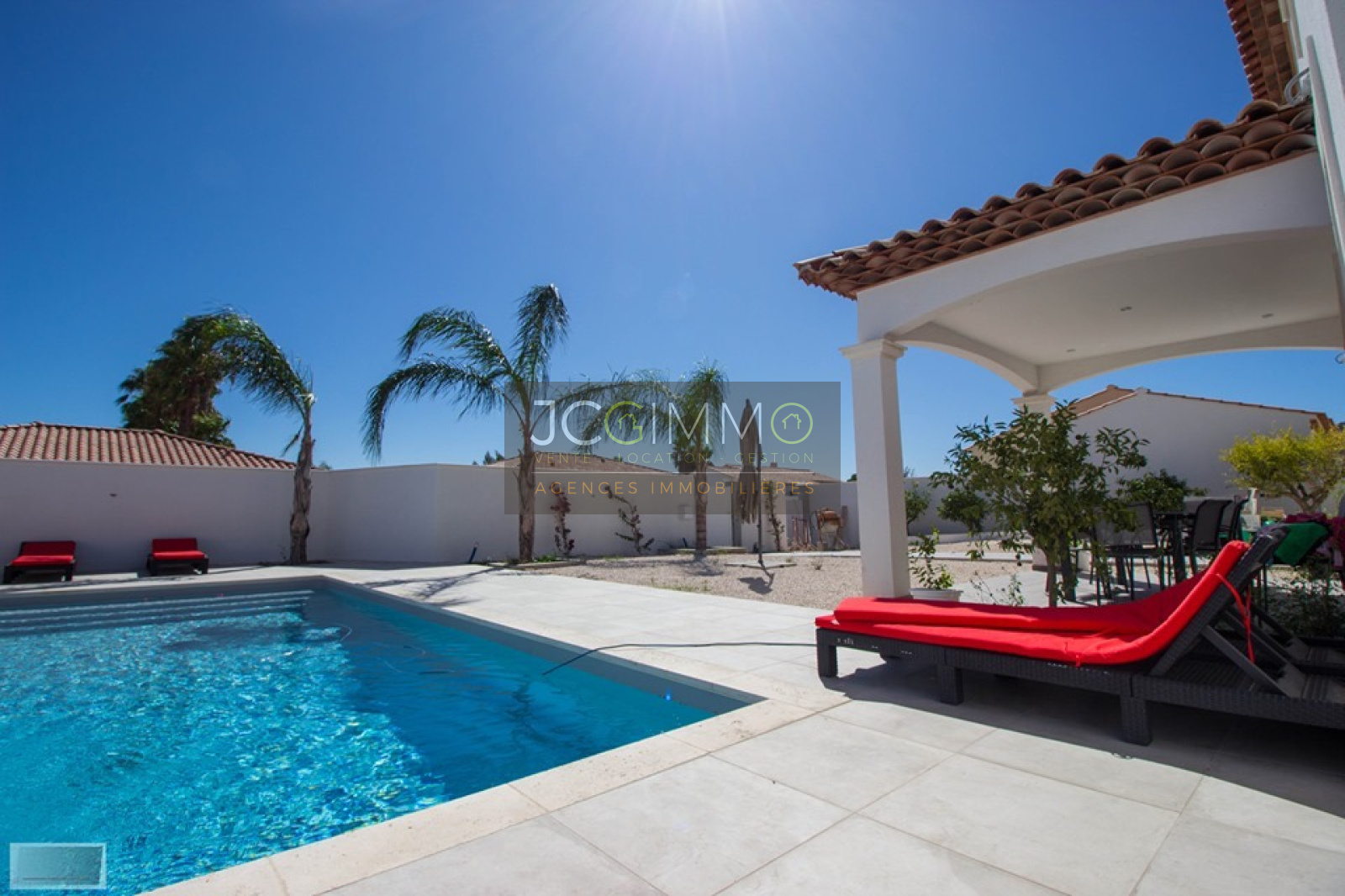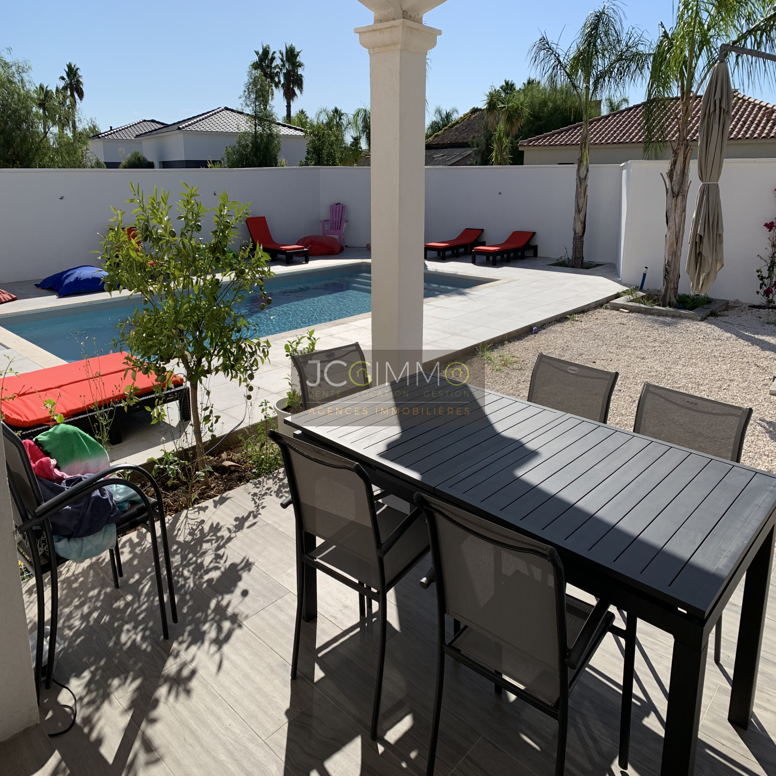 Nous vous présentons cette superbe maison individuelle NEUVE plein SUD d'environ 176m² habitables, construite en 2018/2019 par des artisans (pas de constructeur), avec de très belles prestations dont la climatisation gainable, carrelage 120x120, une superbe dressing et un immense salon, le tout sur un terrain plat de 600m² accueillant une formidable piscine de 8m x 4m.