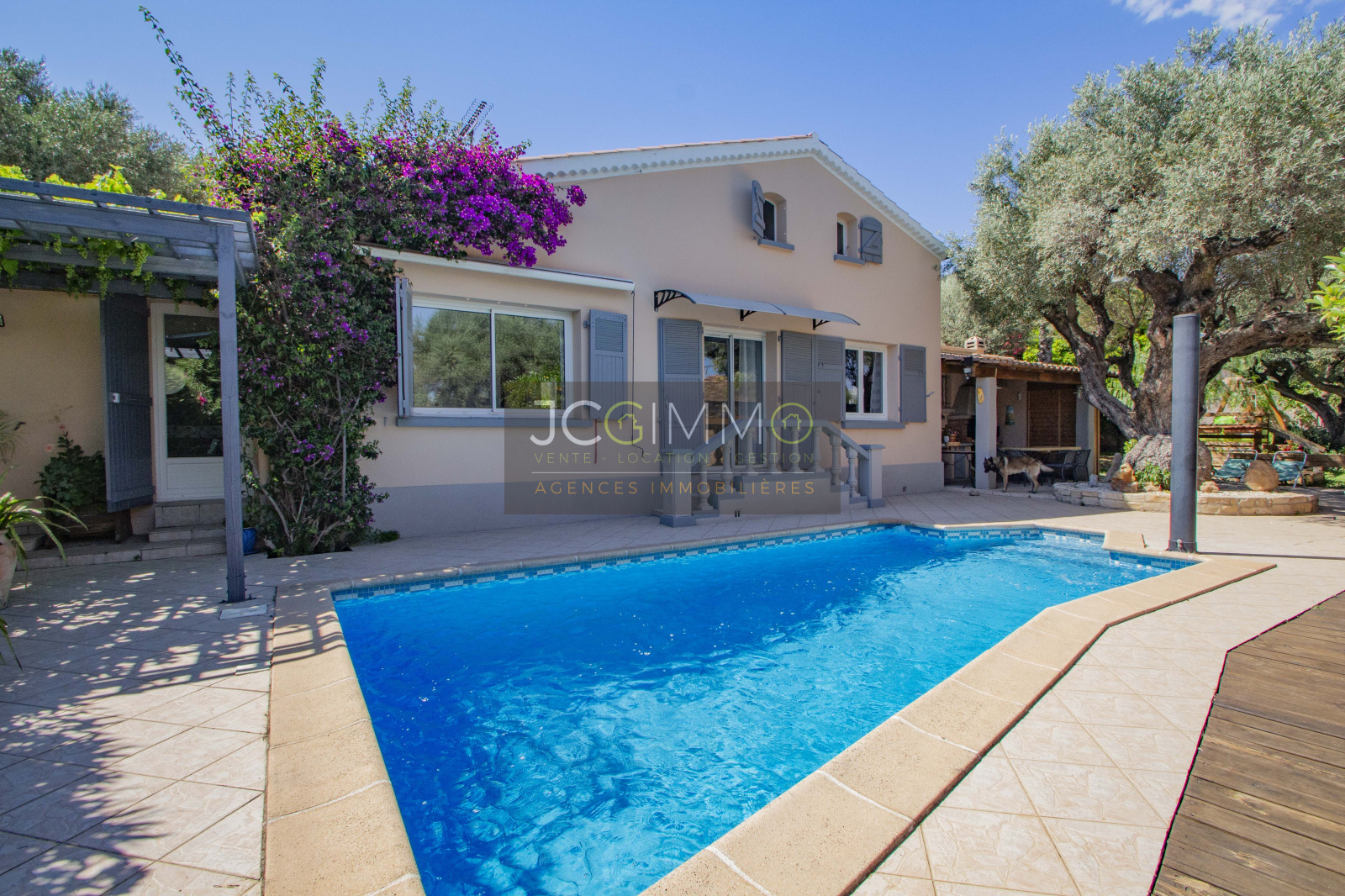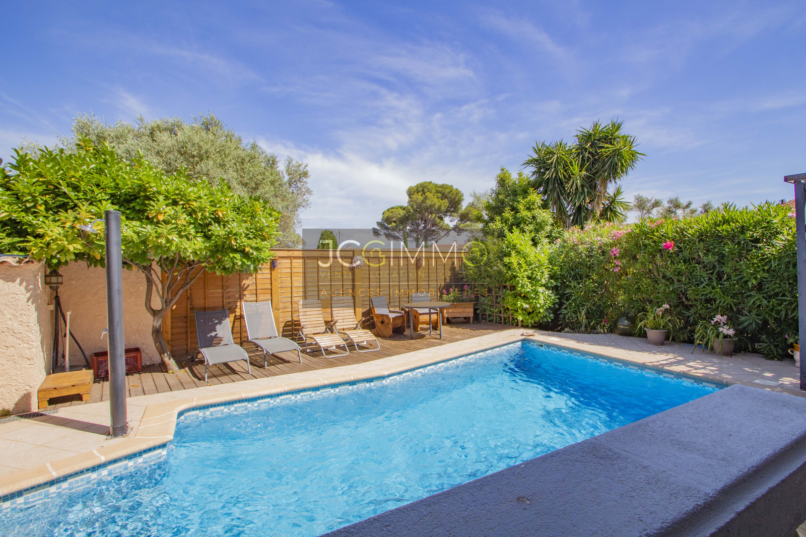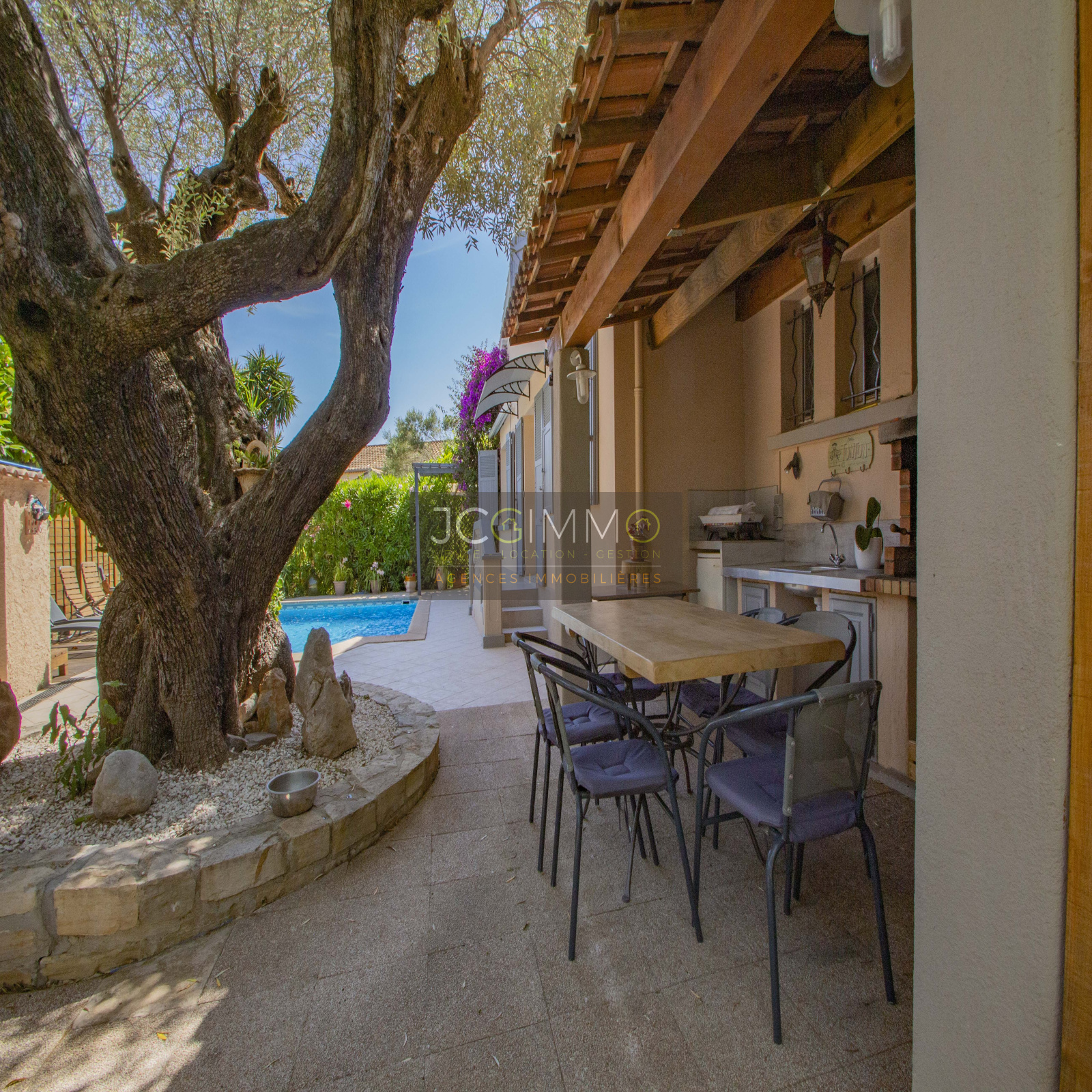 A l'EXTERIEUR, un beau terrain plat et arboré, proposant un très bel espace piscine, et une cuisine d'été pour organiser de bons barbecues en famille/amis.