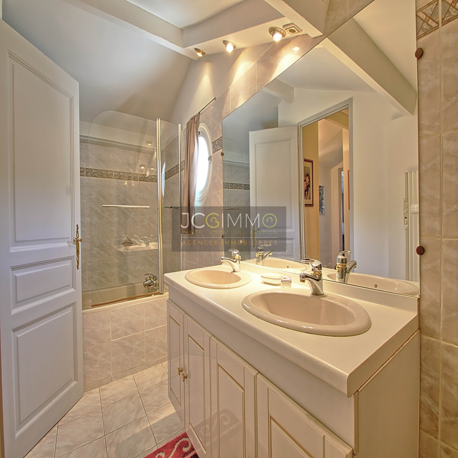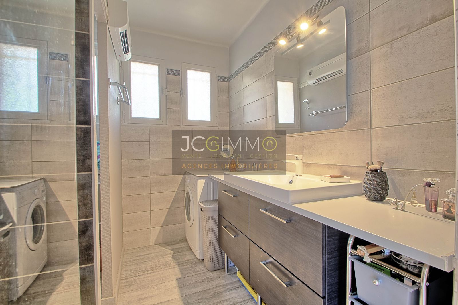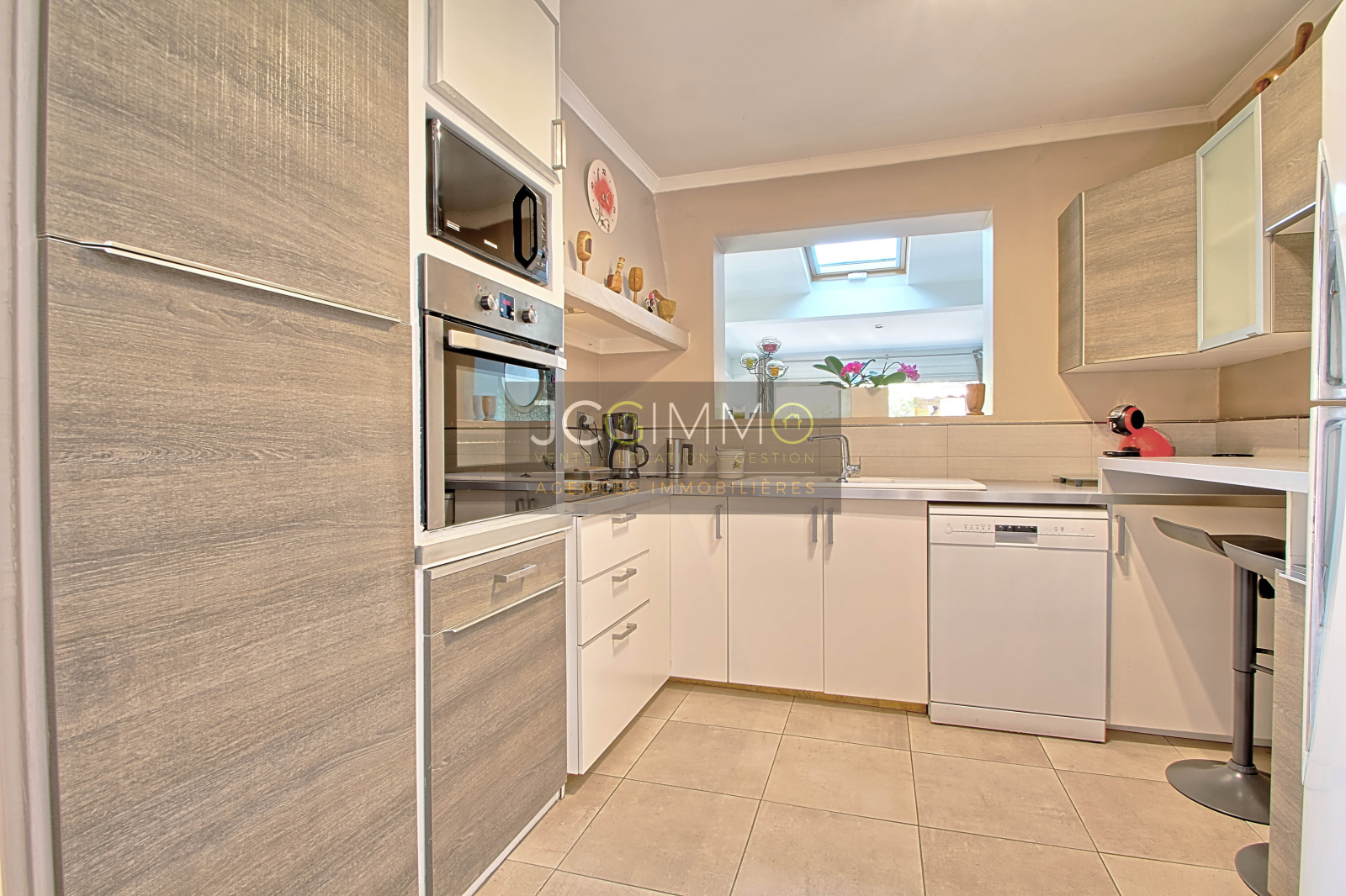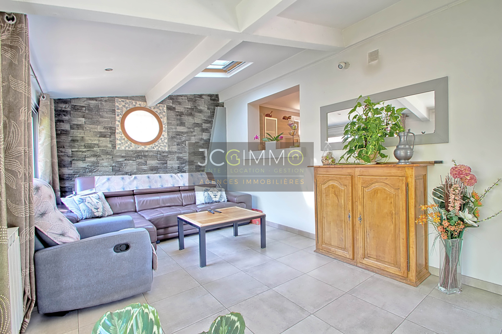 Au REZ DE CHAUSSEE, un grand salon/salle à manger séjour très lumineux avec cheminée, une belle cuisine américaine équipée, deux chambres, une salle d'eau avec douche italienne et wc + placards et rangements.