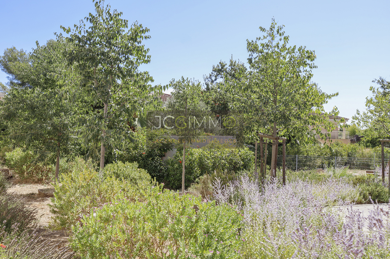 La terrasse de 15m² donne coté jardin, au calme avec une vue dégagée vous offrant un beau panorama.