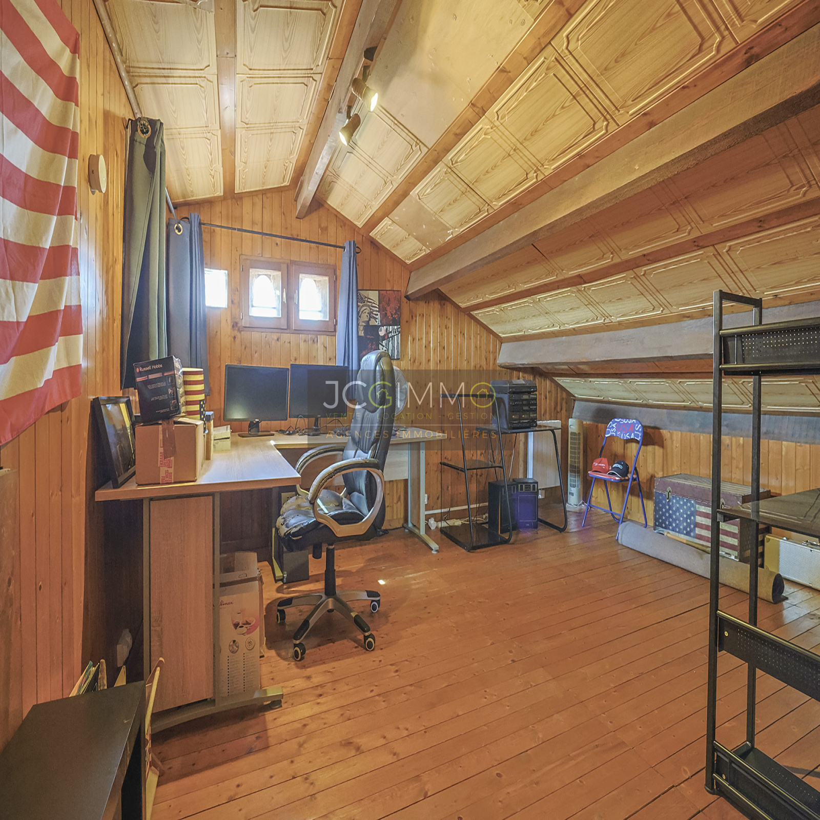 Ce niveau dispose également d'un accès vers des combles aménagés avec une chambre et un espace bureau/salle de jeux en enfilade.