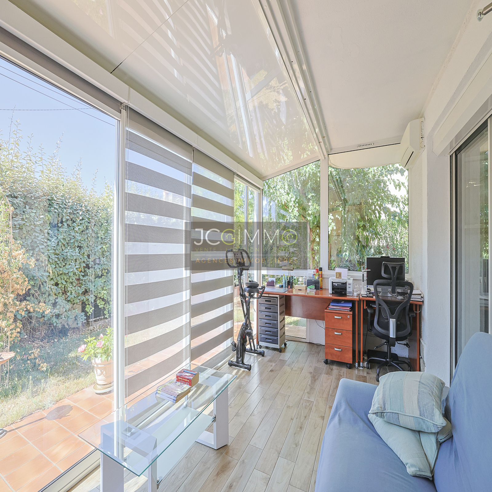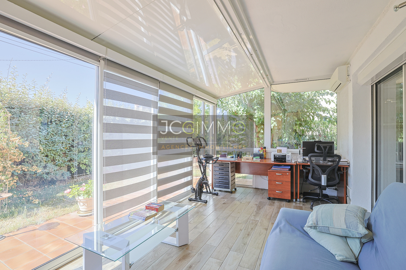 Au rez-de-chaussée: Salon, salle à manger, une cuisine équipée et aménagée,une chambre avec placards, une salle d'eau avec douche italienne, cellier, WC, et une très jolie véranda avec climatisation réservible.