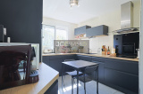 A l'étage, Salon, salle à manger, une cuisine américaine équipée ouverte, une chambre, un bureau avec salle d'eau, salle de bains, WC séparé, et terrasse plein SUD .
