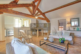 A L'INTERIEUR, Grand salon de 42m² très lumineux avec cuisine américaine équipée et accès sur la terrasse, trois grandes chambres dont deux au rez de chaussée avec salle de bain et dressing, et une suite parentale avec dressing sur un demi niveau.