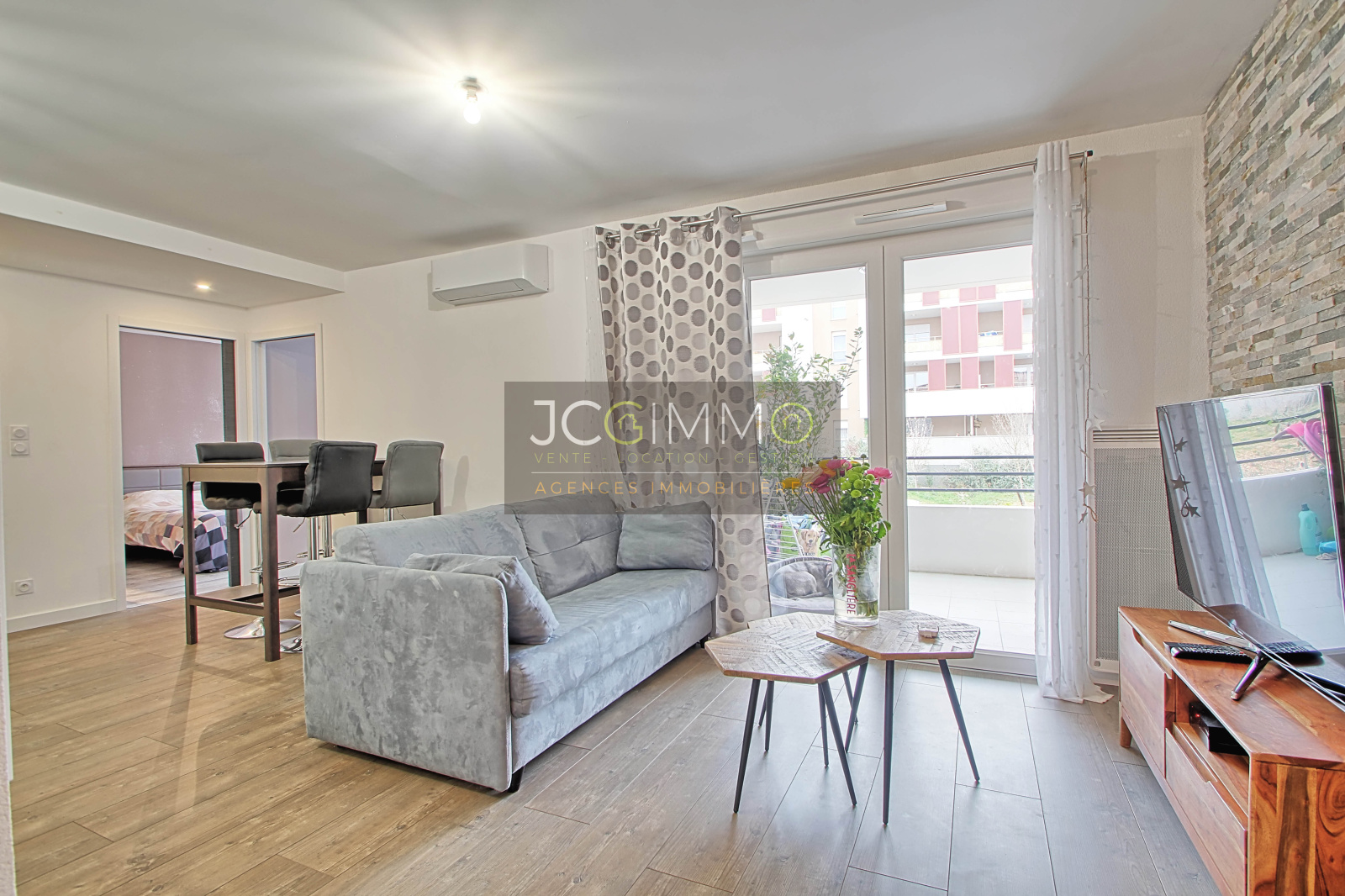 SOUS COMPROMIS DE VENTE La Londe les Maures : proche centre ville et commodités, à seulement 5min de la plage, superbe appartement T3 dans une copropriété livrée en 2018 avec espaces verts, piscine et place de parking privative devant l'immeuble ! Il est au premier étage, accessible par ascenseur ou escaliers et se compose d'un séjour / cuisine US équipée d'environ 30m² donnant sur une terrasse couverte de 7m², 2 chambres dont une avec éléments de dressing sur mesures, une salle de bain, un WC et un espace buanderie. Appartement neuf et équipé avec cuisine de qualité, climatisation réversbile, convecteurs électriques, volets roulants... Logement très économe (voir DPE). A saisir !
