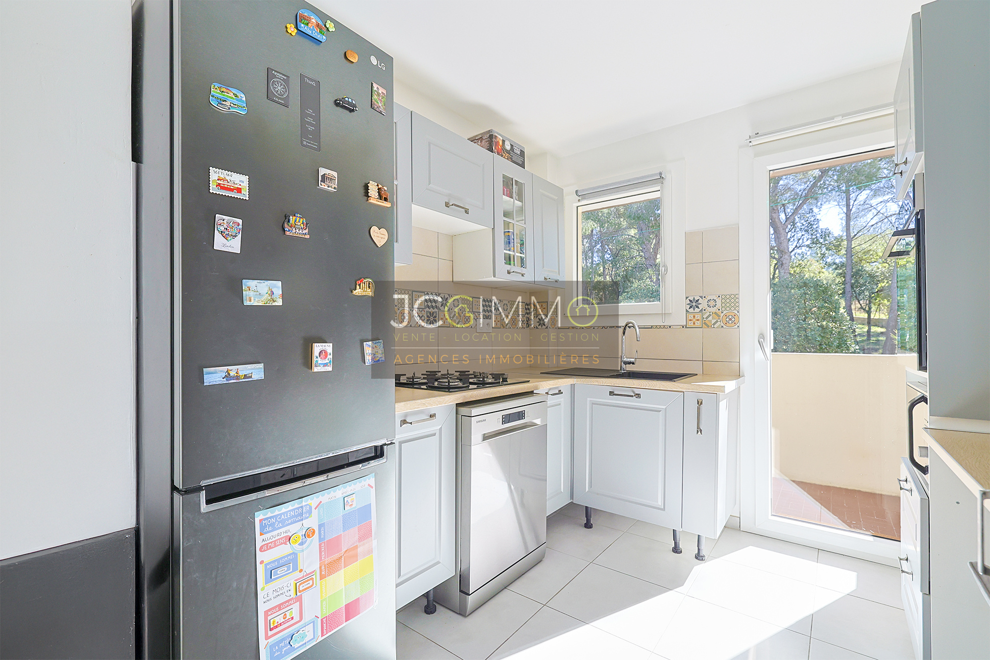 PRESTATIONS : Cuisine aménagée et équipée, salle d’eau aménagée et équipée, huisseries PVC avec double vitrage, volets bois, chauffage collectif au gaz, climatisation réversible (2025) dans toutes les pièces, chauffe-eau électrique plat connecté 80 L (2023), visiophone, fibre internet, eau de ville, tout à l’égout.