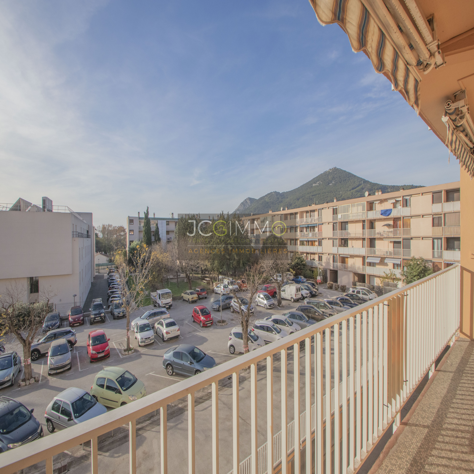 L'appartement se compose d'un beau séjour bénéficiant d'une belle terrasse avec vue sur le Faron, une cuisine séparée, trois chambres, un cellier, une salle de bains, un WC indépendant.