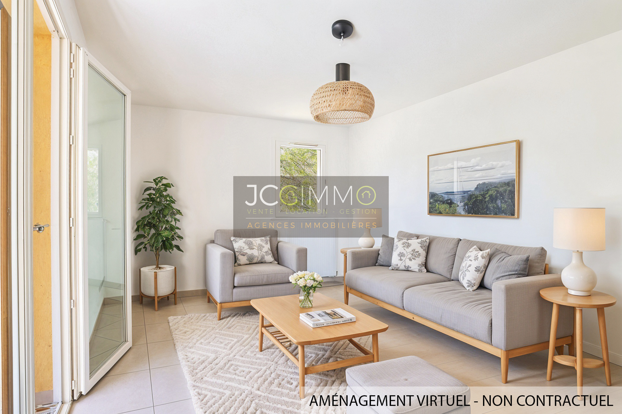L'appartement se compose d'un beau salon/séjour très lumineux avec sa belle terrasse plein Sud, une cuisine américaine ouverte et semi-équipée, deux chambres avec vue sur les espaces verts, une salle d'eau très pratique avec douche, WC séparé. De plus, vous disposerez d’un garage en sous-sol de 17m².