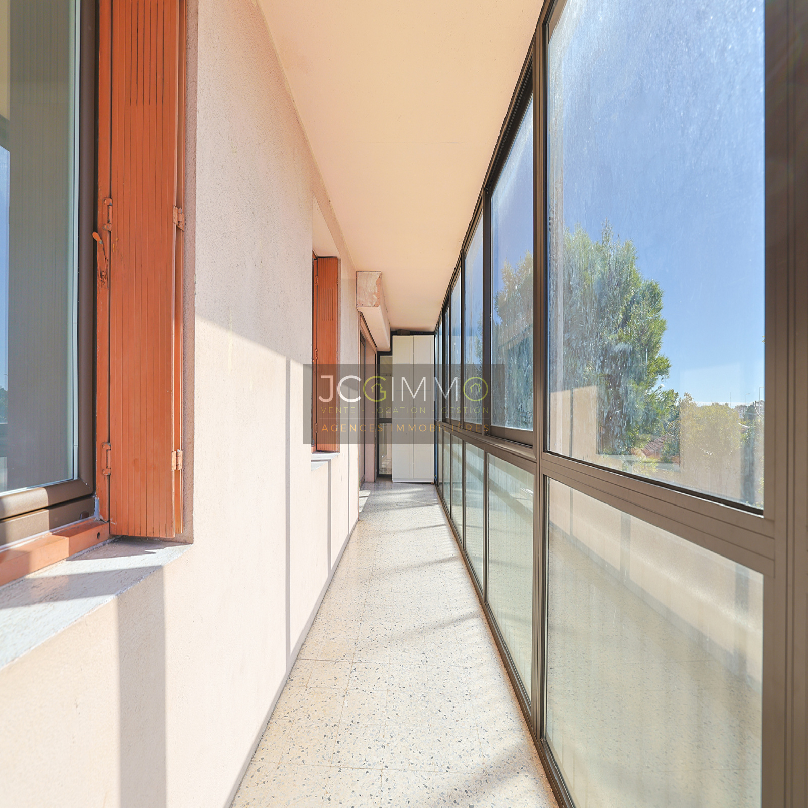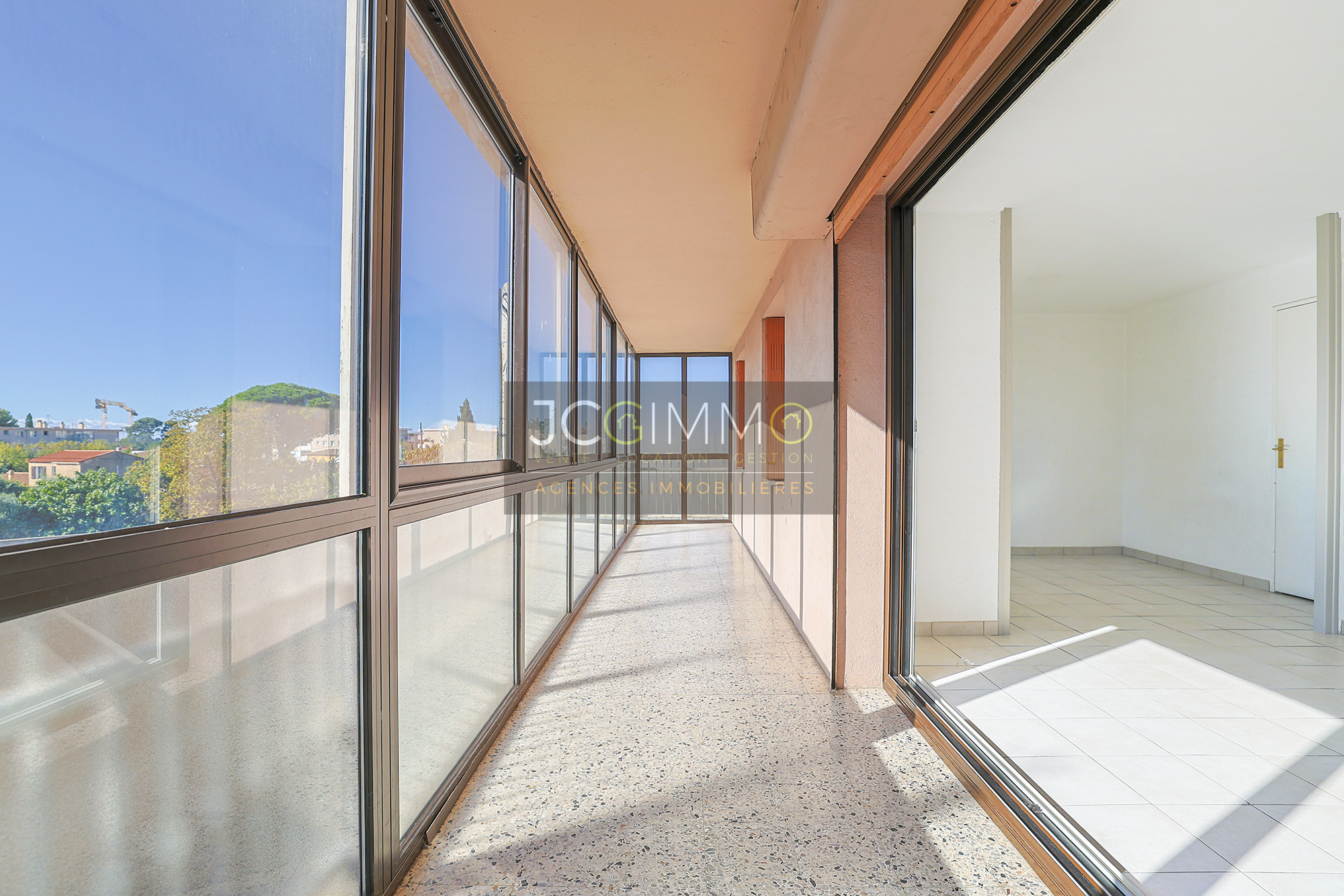 D'une surface généreuse totale de 83m², il se compose d’une entrée, un salon/séjour lumineux ouvrant sur une grande loggia fermée de 14 m², une salle à manger pouvant facilement être transformée en 3ème chambre tout en conservant un salon confortable, deux chambres avec accès direct à une terrasse commune, une salle de bains, un WC indépendant.