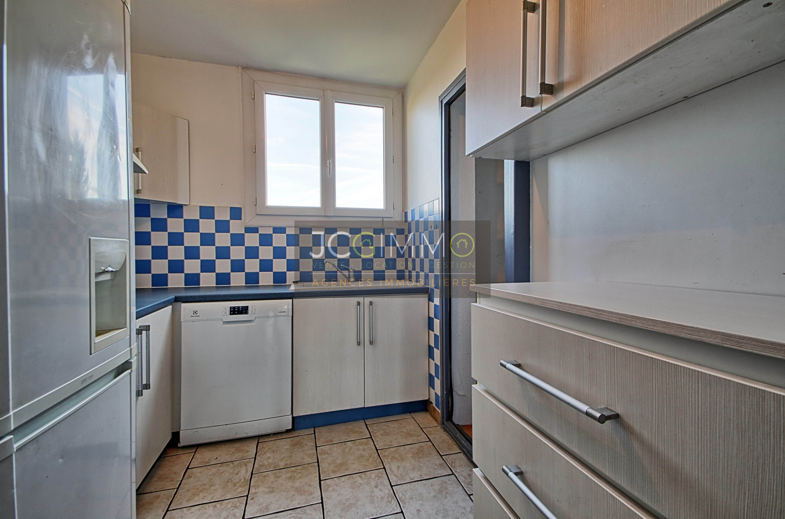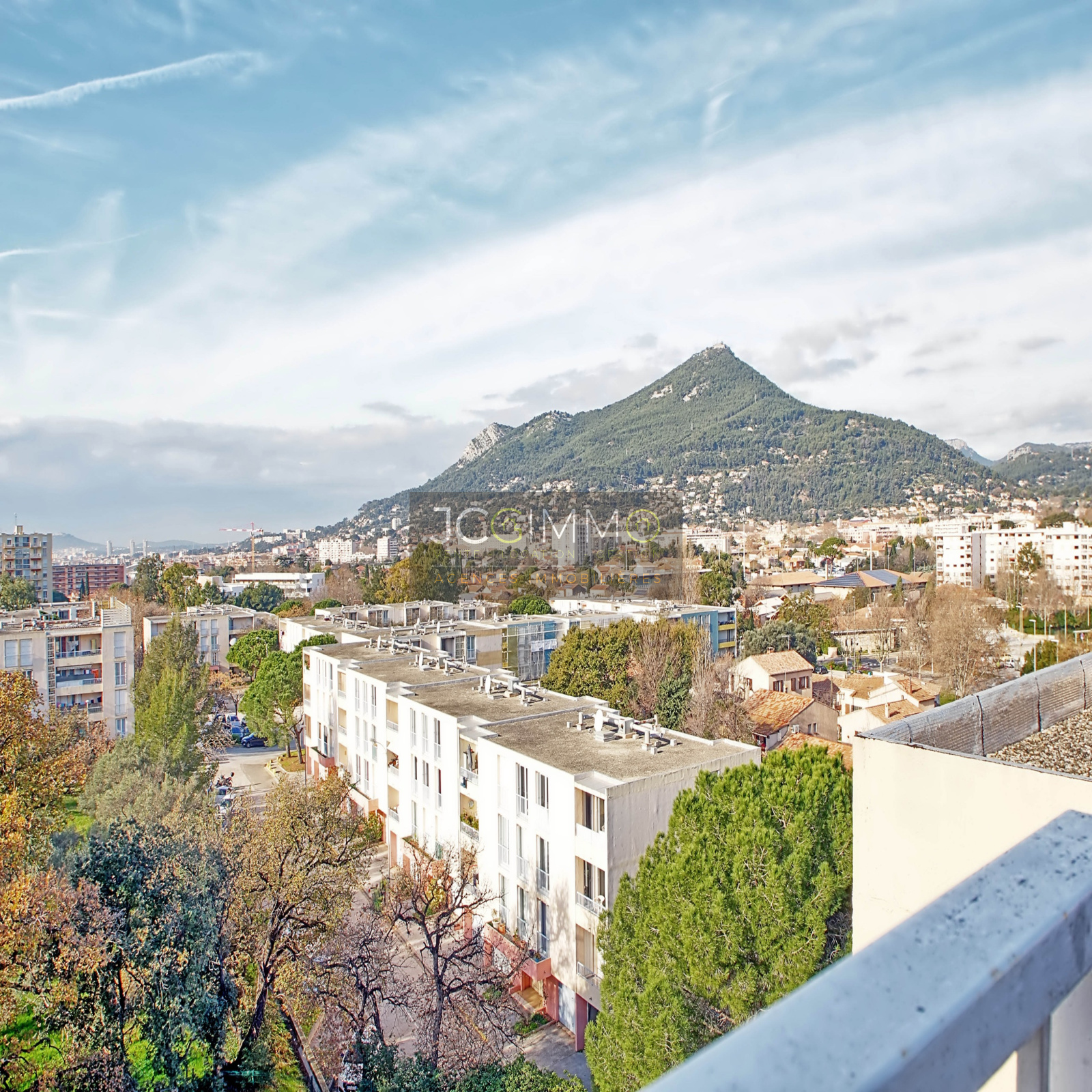 EN EXCLUSIVITE La Valette du Var (Les Migraniers). Dans une résidence sécurisée, Appartement T3 61,30m² Carrez avec terrasse 6m² env, au dernier étage d’un immeuble de 5 étages avec ascenseur + CAVE en sous-sol + GARAGE Box de surface. L’appartement se compose d’une entrée avec placard, d’un salon / salle à manger donnant sur terrasse et vue dominante imprenable sans aucun vis-à-vis, de 2 chambres avec placard dont 1 avec accès à la terrasse, d’une salle de bains, d’un WC séparé et d’une cuisine aménagée séparée. Climatisation réversible, fenêtres Double vitrage, volets motorisés, sol carrelé. Exposition Sud et Ouest. Nombreux parking visiteurs. Idéalement placé, au calme en retrait des voies principales et proche des commodités.