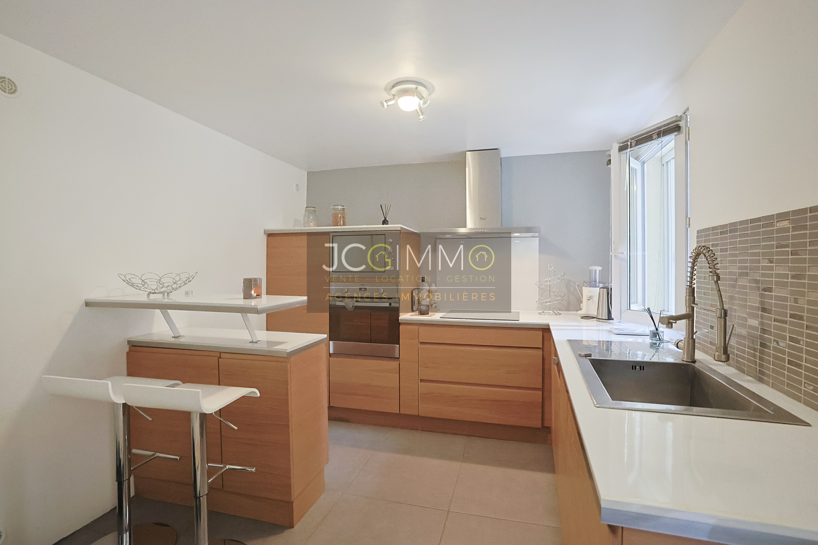 Vous trouverez au RDC une cuisine amenagée et equipée.