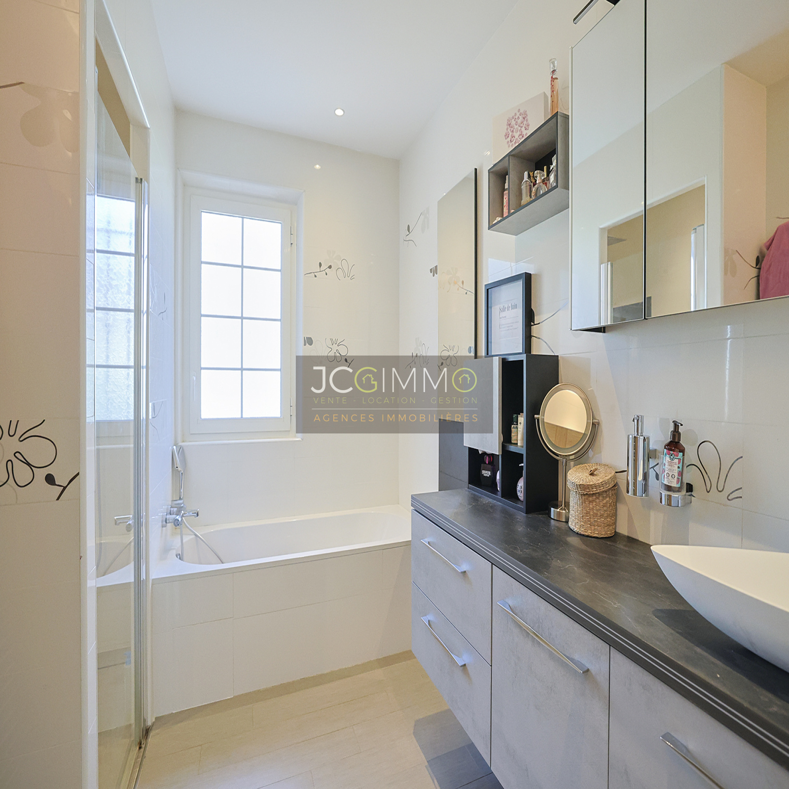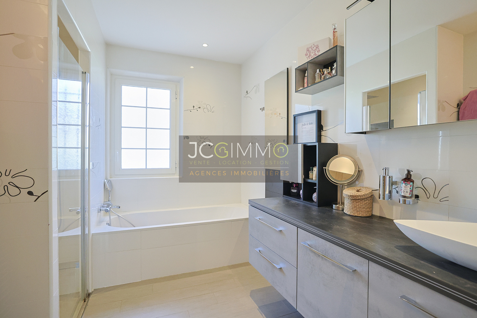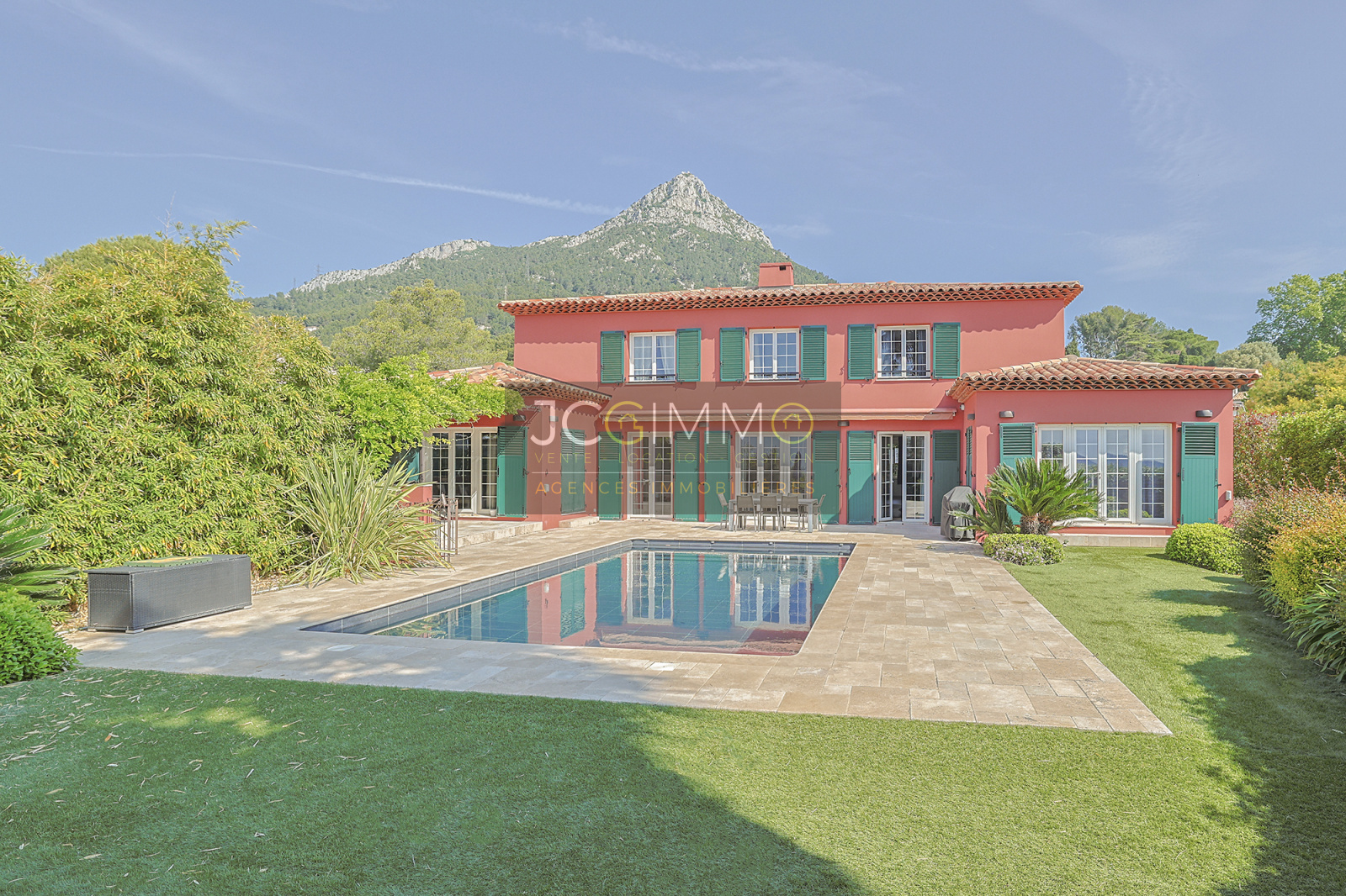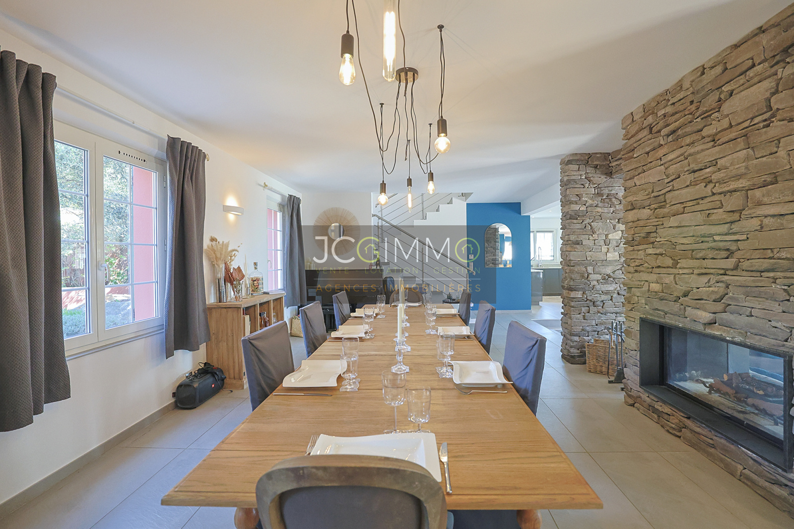 Plot of land with a surface area of 2142m², very well landscaped and planted with trees, with a lovely unobstructed view all the way to the sea. Enjoy the sunny days thanks to the 9m x 5m heated swimming pool. The terraces provide friendly spaces for outdoor dining or simply relaxing while admiring the garden surrounding the property. An automatic watering system ensures greenery in the garden all year round thanks to drilling.