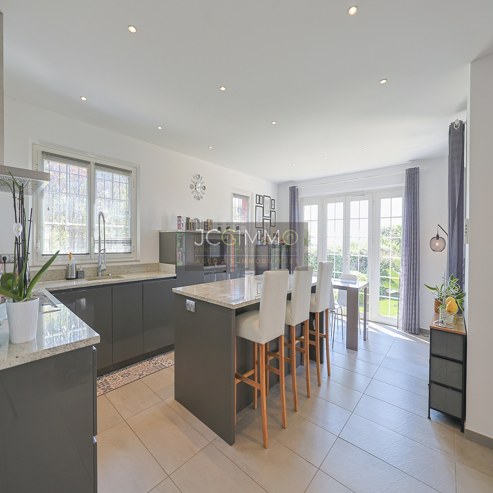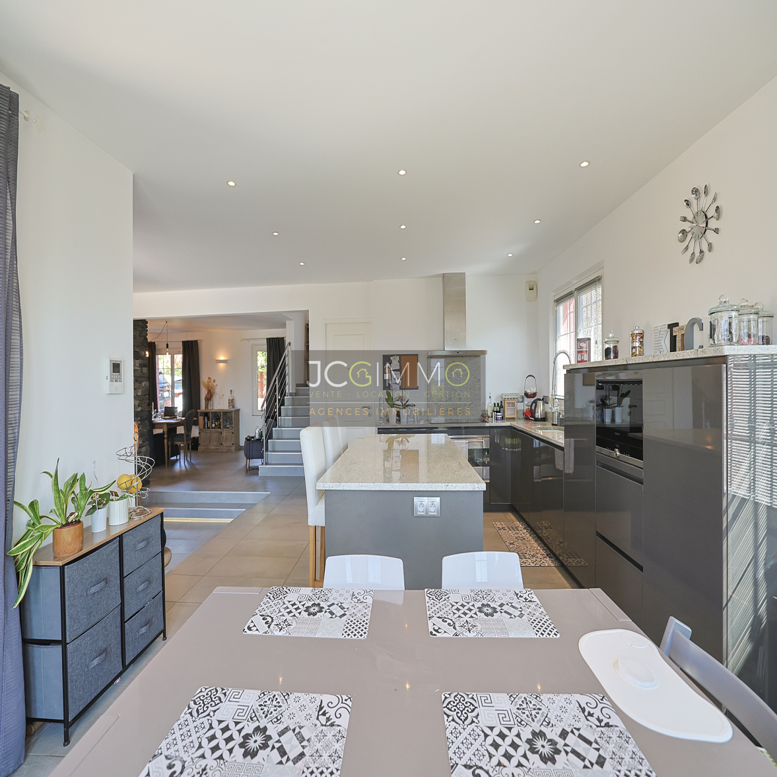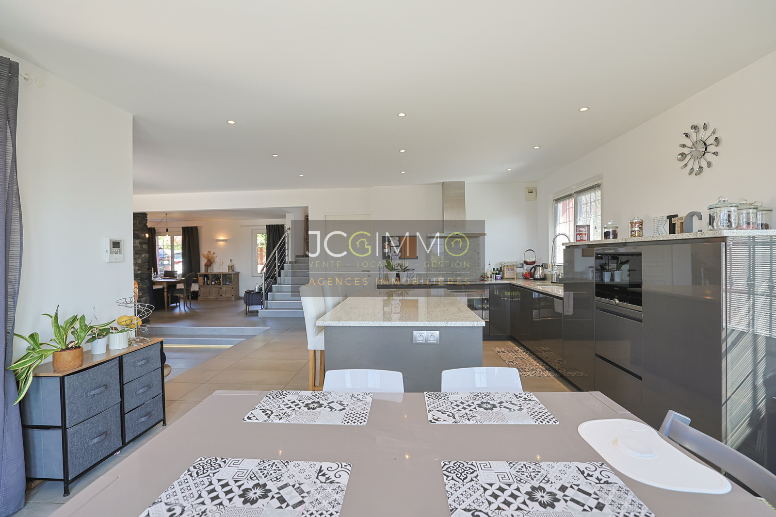 Au rez-de-chaussée, une très belle pièce de vie avec cuisine ouverte vers le salon, la salle à manger, coin TV, bureau, cellier.