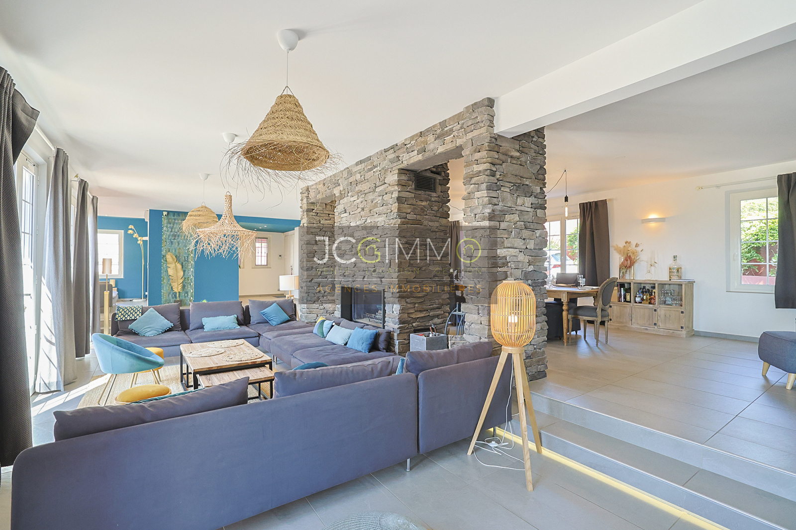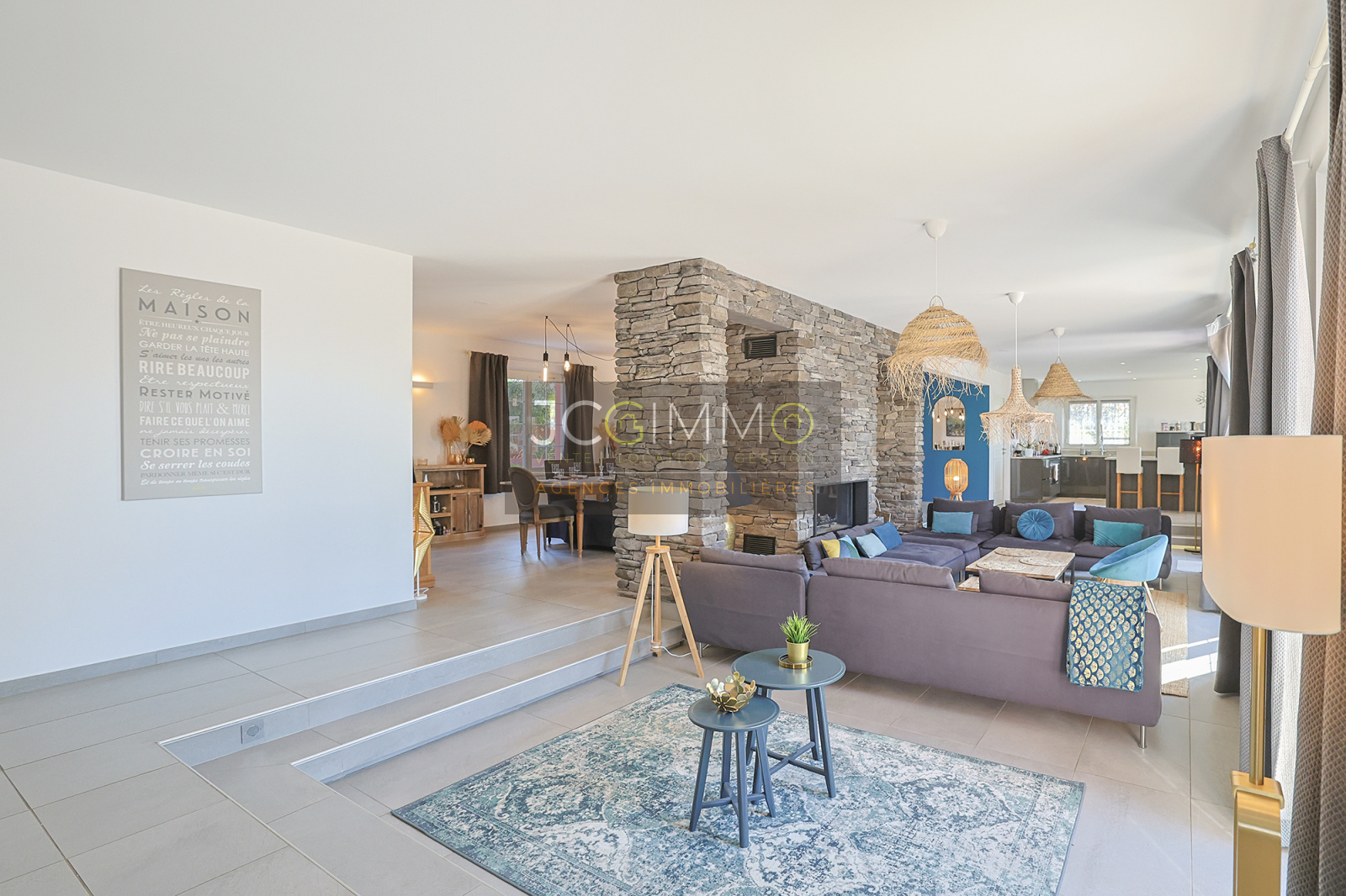 Plancher Chauffant et Rafraichissement avec pompe à chaleur, Climatisation, Forage, Piscine Chauffée de 9m x 5m + rideaux de protection, Menuiseries Aluminium,Cuisine équipée haut de gamme, Alarme,Vidéo Surveillance, Arrosage automatique, Accès handicapé, Portail Electrique.