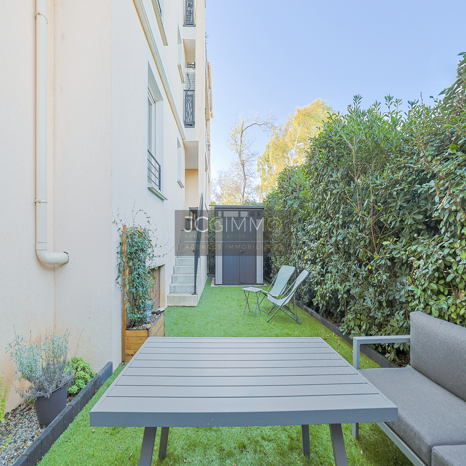 - l'autre un niveau en dessous, spacieux et clôturé, comprenant un cabanon pour stocker du matériel, un coin salon de jardin et le tout sans vis-à-vis ni balcon au-dessus.