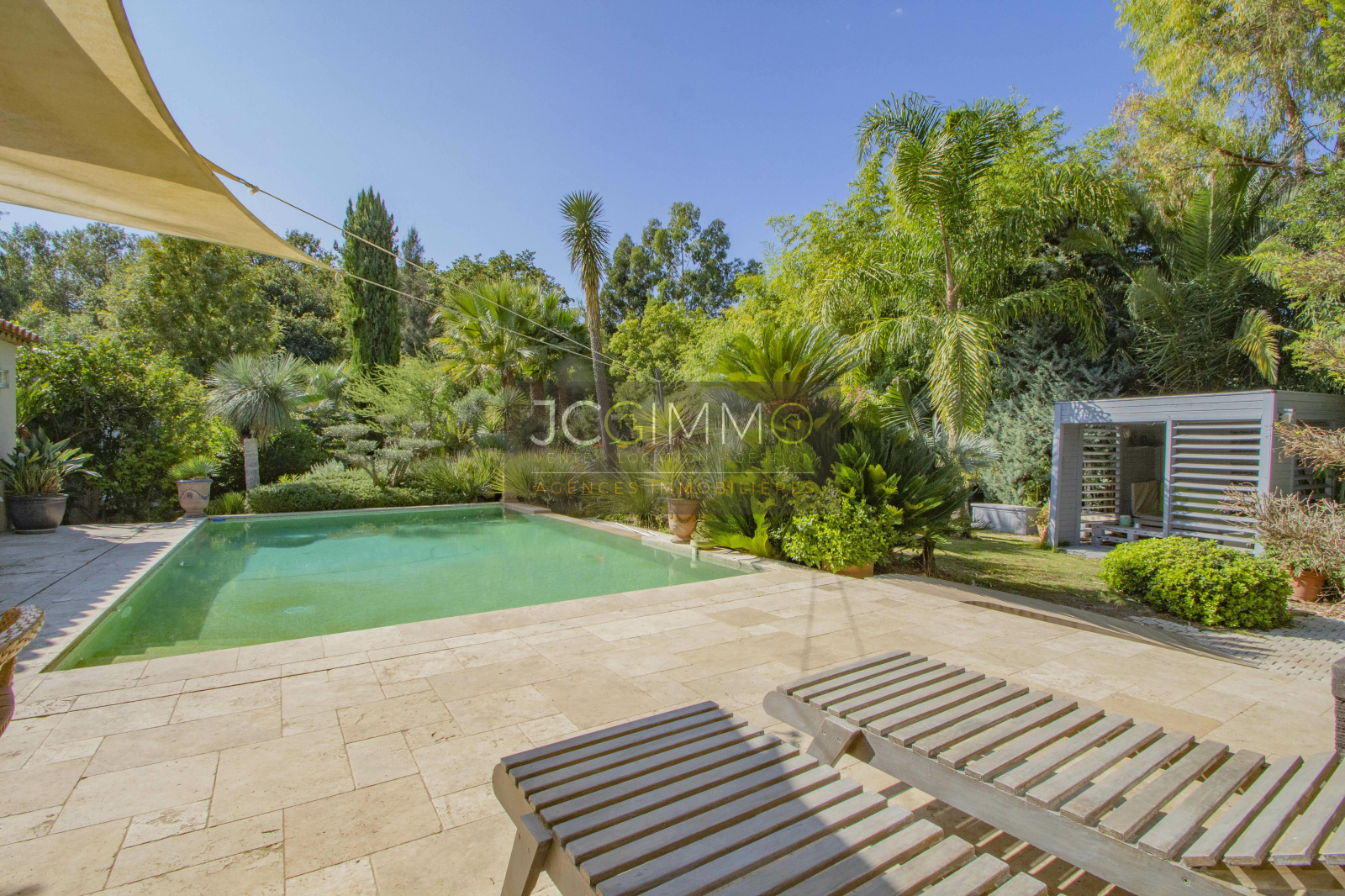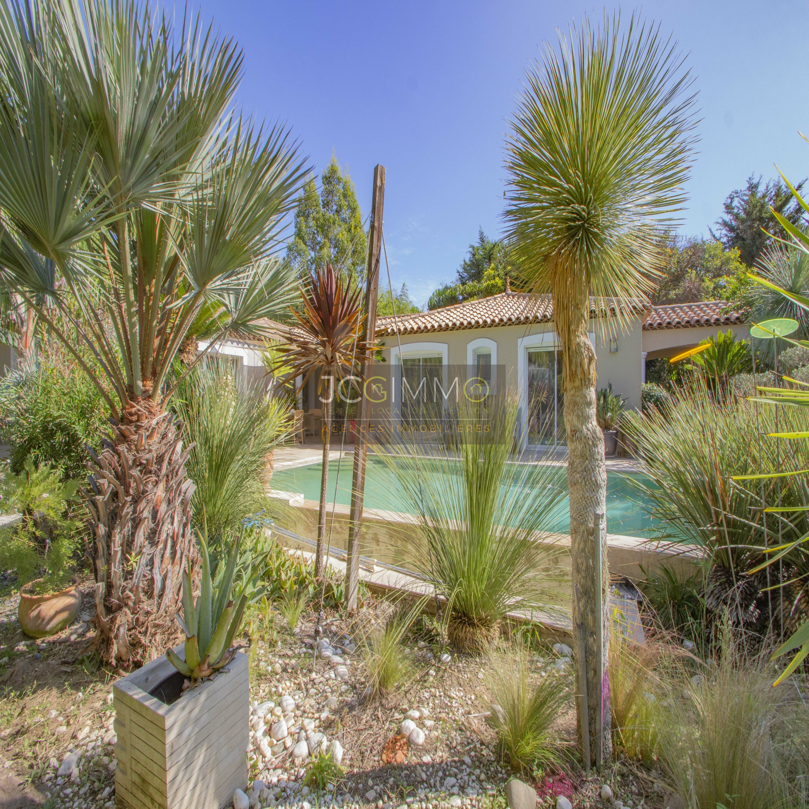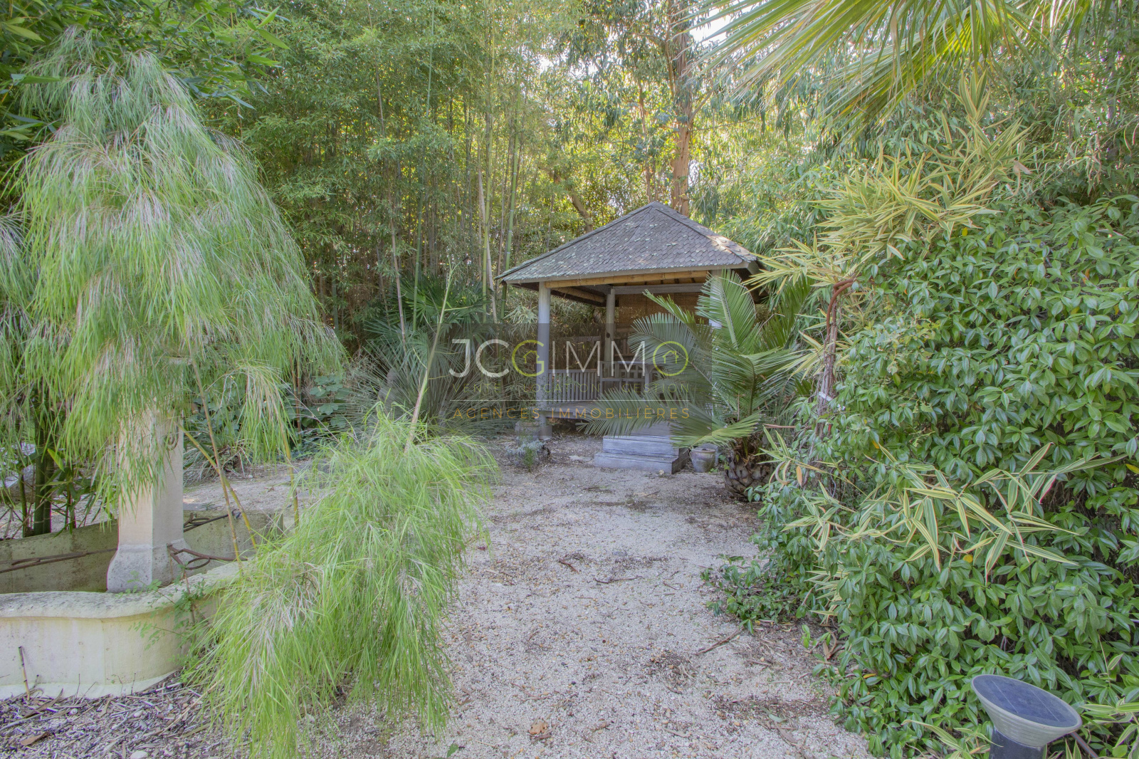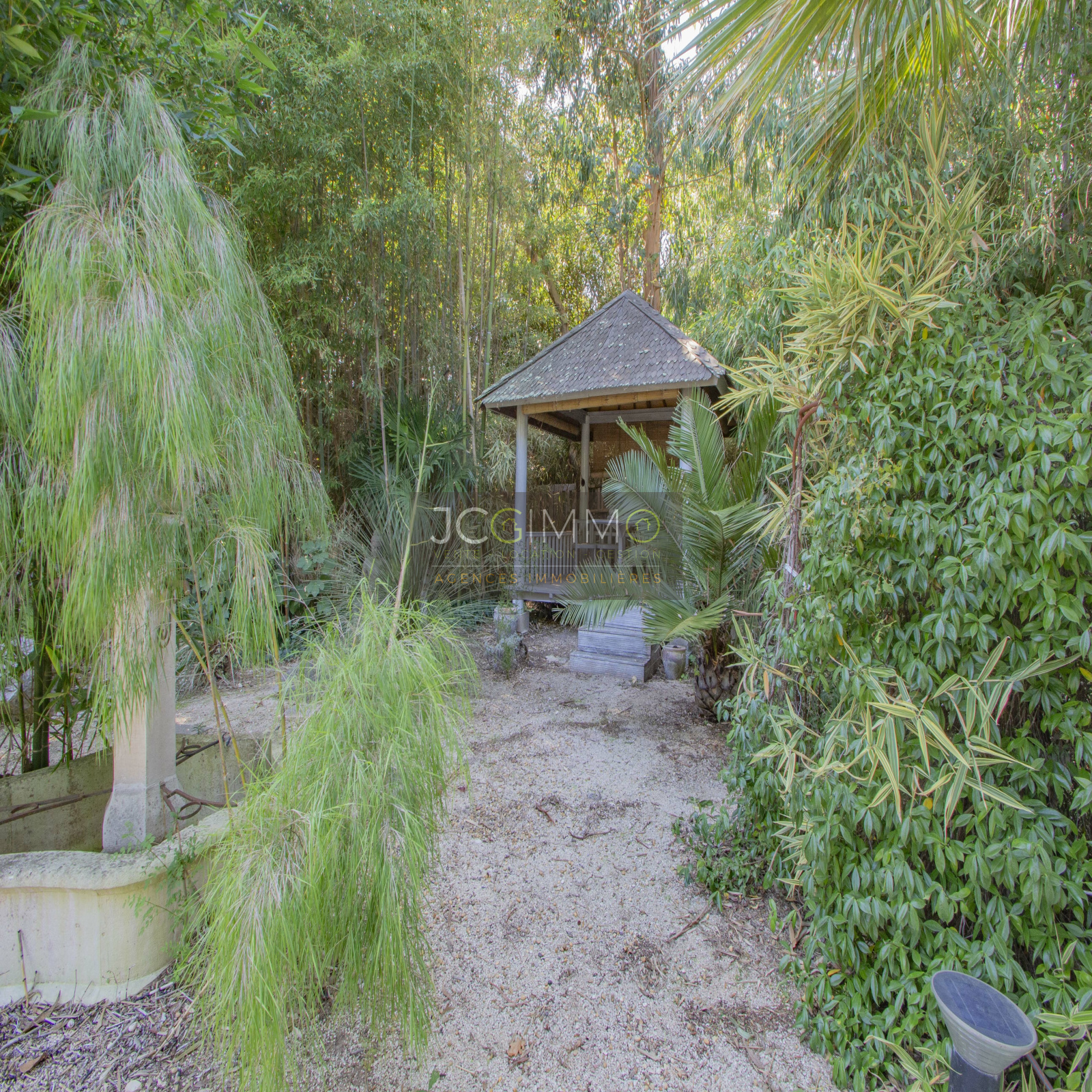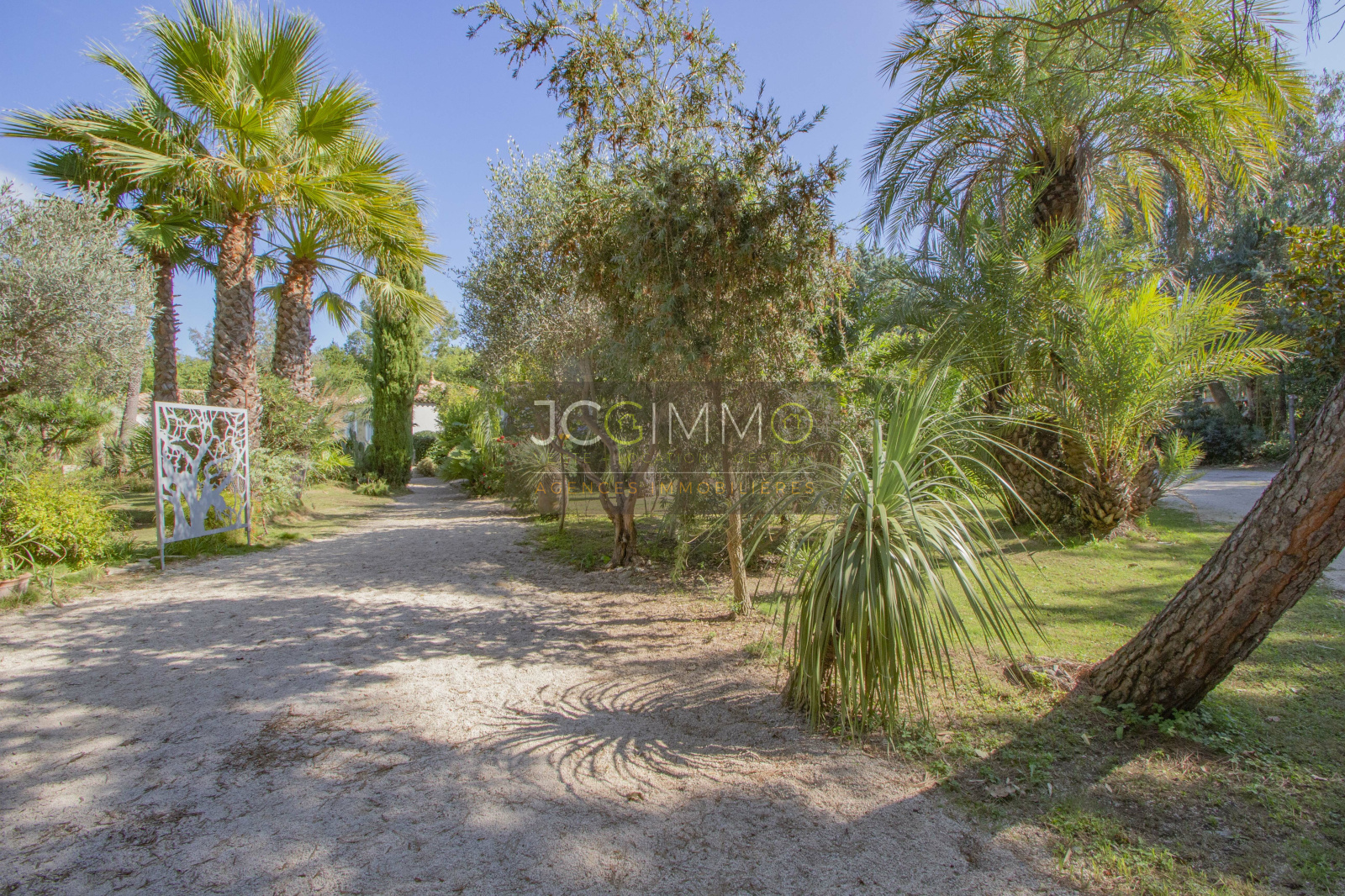 Terrain clos de 2800 m² très bien paysagé et arboré offrant palmiers, essences Méditerranéennes, arbres fruitiers et une multitude d'autres espèces.