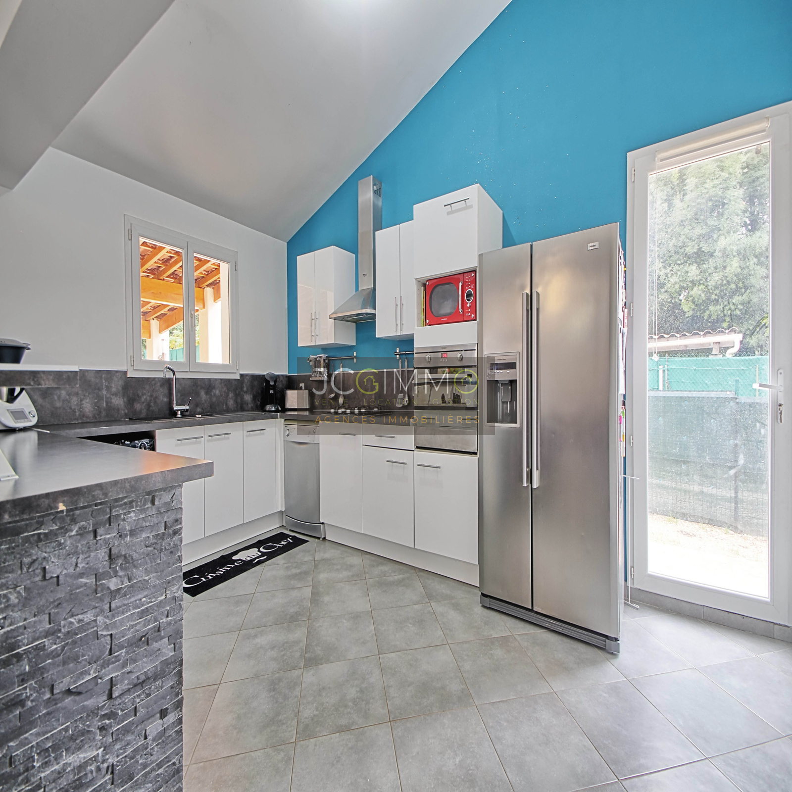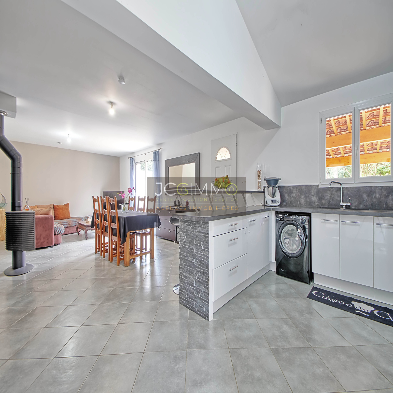 Nouveauté chez JCG Immobilier, et nulle part ailleurs ! RARE A LA VENTE, nous vous présentons cette superbe maison de PLAIN PIED, quasiment neuve, exposée plein Sud, au calme. Construite en 2013 avec de belles prestations et parfaitement entretenue, cette villa de PLAIN PIED propose une surface habitable d'environ 100m², sur un terrain plat et arboré de 1 000m², avec espace piscine + annexe pour ranger vos outils dans le jardin.
