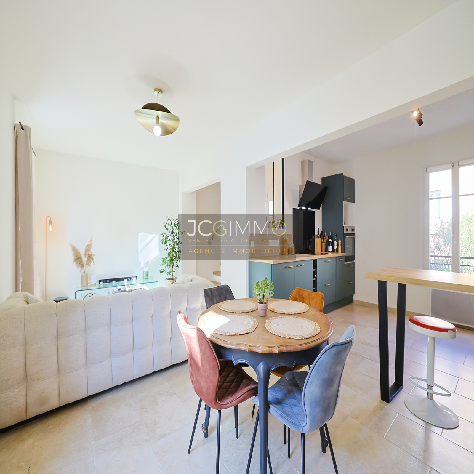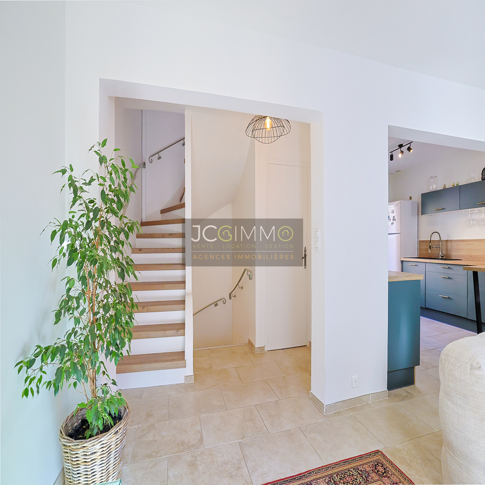 Vous allez être complètement séduit par le charme, le cachet et les prestations de cette maison de ville T4 d'environ 90 m2 Habitable. La maison est parfaitement entretenue, Lumineuse et très agréable à vivre. Elle est implantée en plein coeur du village, dans une rue calme, offrant en plus de l'habitation, un garage de 30 m2 pouvant accueillir 1 véhicule ainsi qu'une belle cour d'environ 40 m2 avec véranda, dédiée à la détente, aux bains de soleil et aux barbecues entre amis, c'est un petit coin de Paradis !. D'une surface habitable d'environ 90 m2 de type T4, elle se compose d'un rez de chaussée comprenant une entrée desservant un grand garage et une cour avec une véranda. D'un 1er étage composé d'une pièce de vie d'environ 40 m2, comprenant un séjour avec une cuisine ouverte, aménagée et équipée et d'un wc. D'un 2ème étage comprenant un palier, 2 chambres, 1 bureau ( 11,5m2, 11,5m2, 8m2 ) une salle d'eau et un wc indépendant. Le bien a été entièrement rénové, vous n'aurez qu'à poser vos valises et profiter, il ne manque rien !. À proximité de toutes les commodités, commerces, écoles, stationnements, c'est un véritable Coup de Coeur. Prestation de qualités (double vitrage pvc, climatisation réversible...)