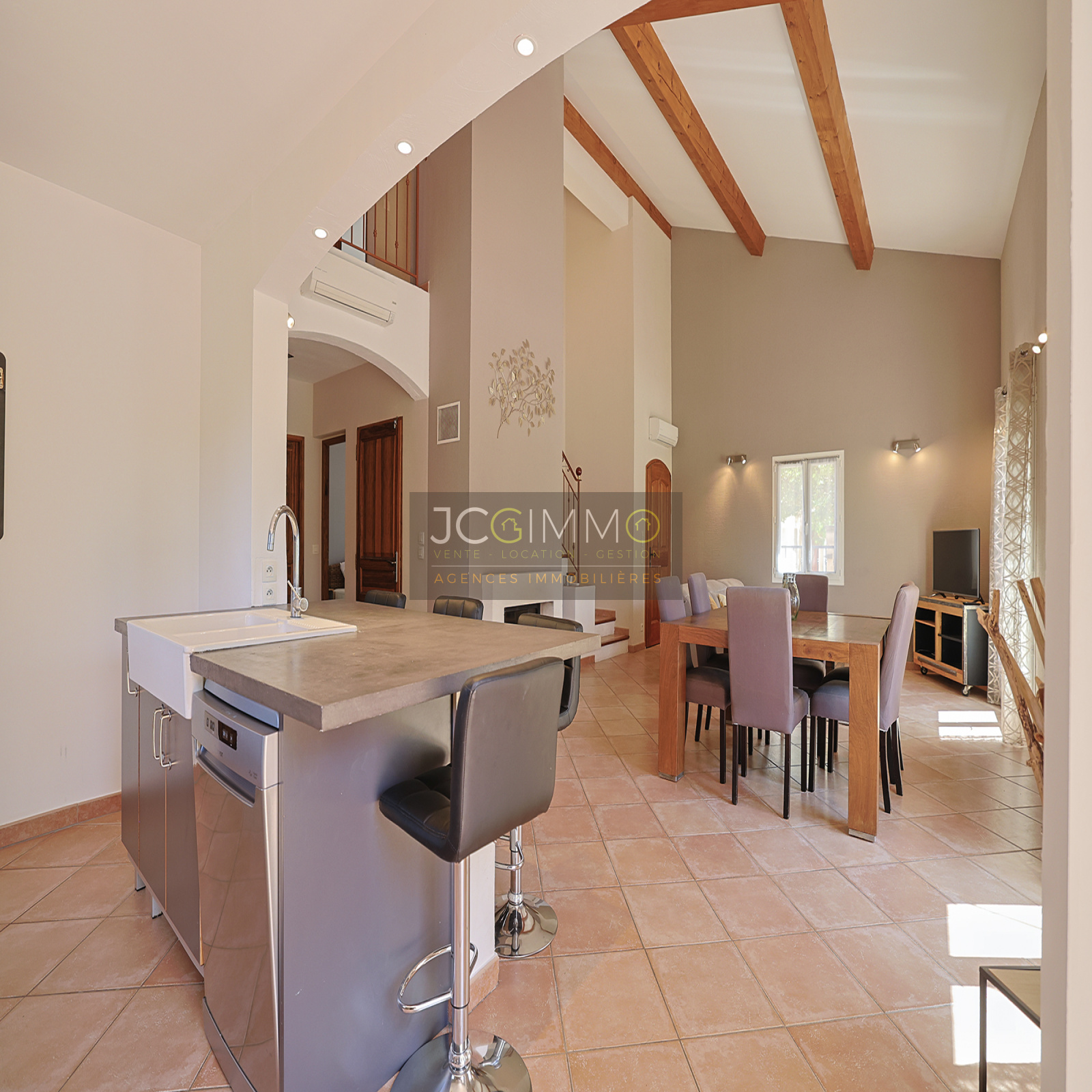 Cette villa jouit de la tranquillité, profitant d'un environnement naturel exceptionnel, tout en étant dans un quartier résidentiel à 2 pas du village, entourée d'un remarquable paysage. c’est un petit coin de Paradis pour les familles que ce soit tout au long de l'année ou en villégiature, à seulement 15 KM des plages, de Toulon, de l'aéroport de Hyères et à 1h15 de l'aéroport de Nice et de Marseille.
