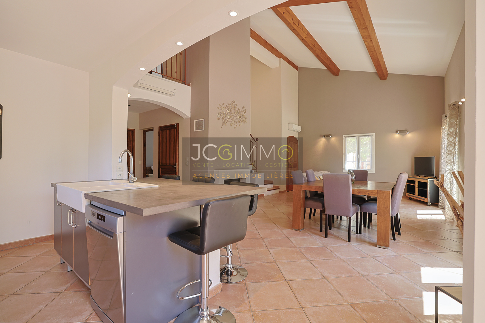 D'une surface totale de 170 m2 dont environ 135 m2 habitable, la villa se compose au rez de chaussée d'une pièce de vie comprenant un séjour cathédrale de 39 m2 avec cheminée, d'une grande cuisine ouverte de 15 m2 aménagée et équipée, d'une buanderie, d'une chambre de 15 m2, d'un grand dressing / bureau, d'une salle de bains + douche, d'un wc indépendant. D'un étage composé d'un palier, d'une mezzanine, de 2 belles chambres, d'une grande salle d'eau et d'un wc indépendant. Vous n'aurez qu'à poser vos valises et profiter, il ne manque rien !.