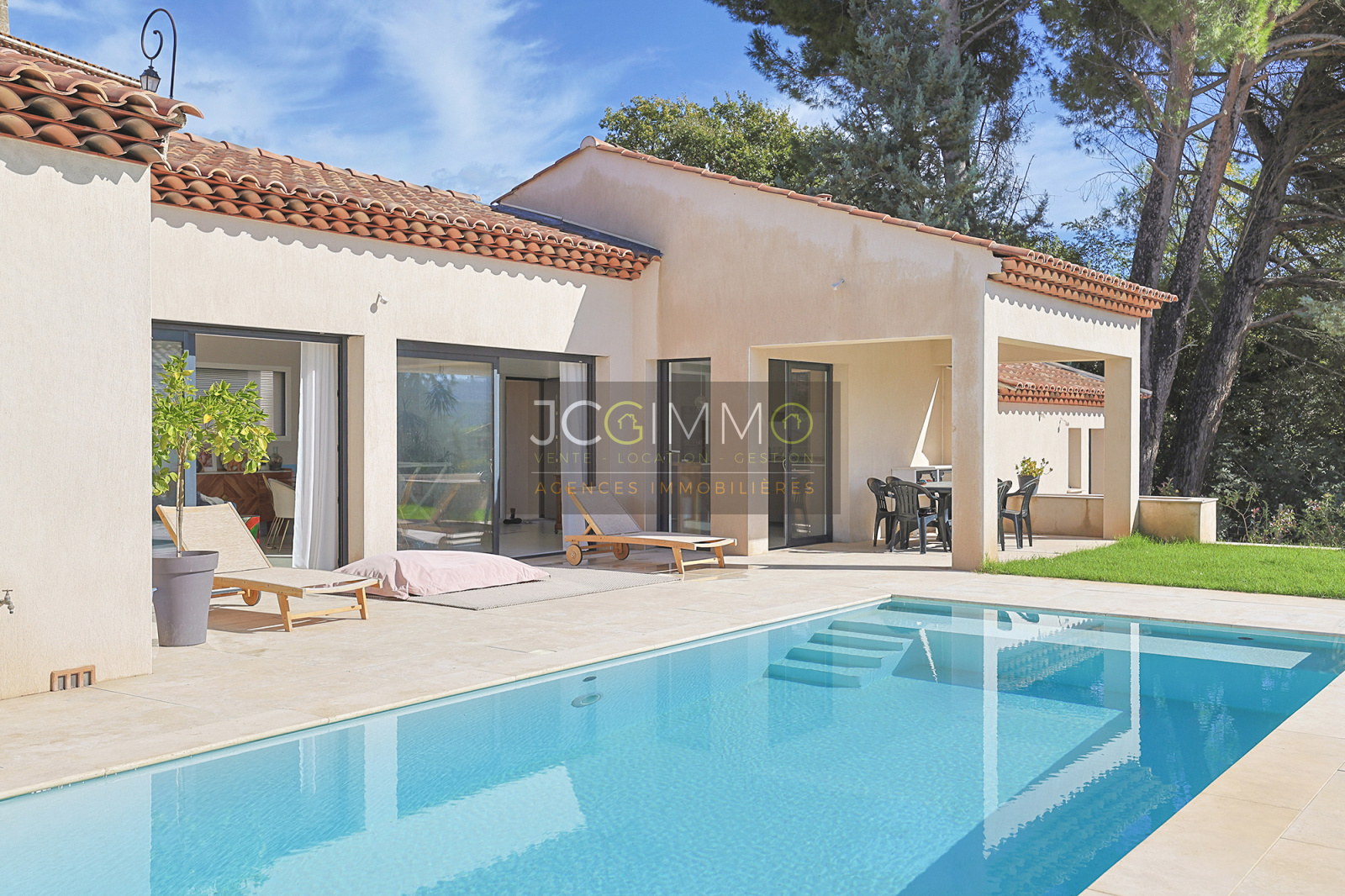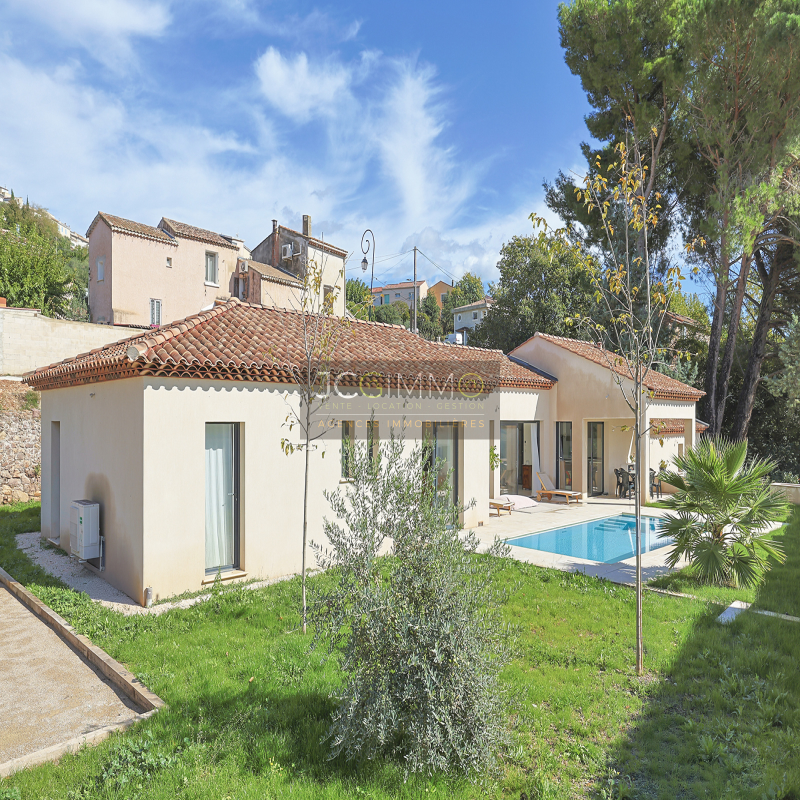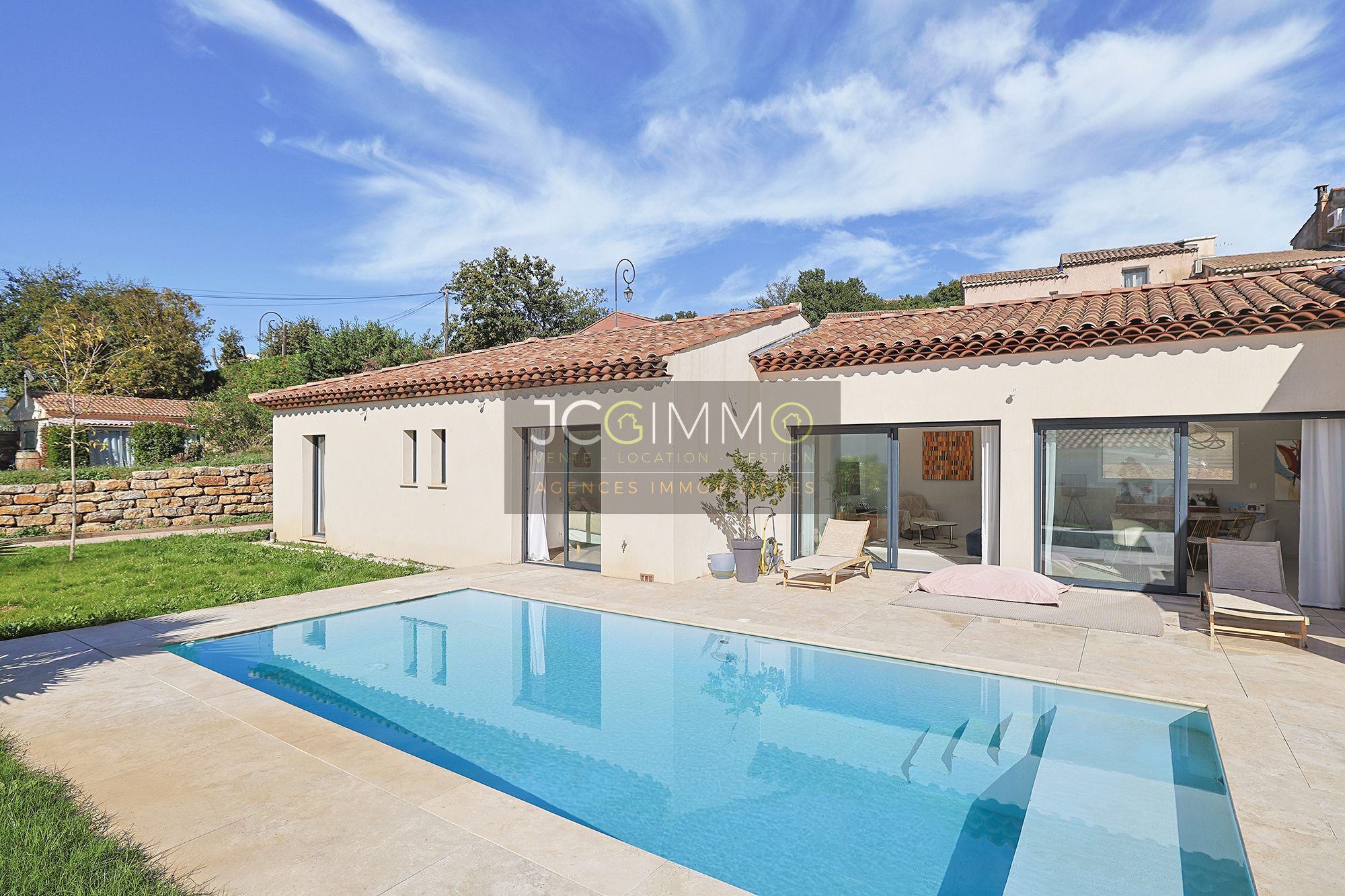 EXCLUSIVITÉ JCG IMMO : sur la commune de Pierrefeu-du-Var, retrouvez cette villa indépendante contemporaine, construite en 2021, d'une surface de 128 m² habitables T5 avec garage sur un terrain de 890 m².