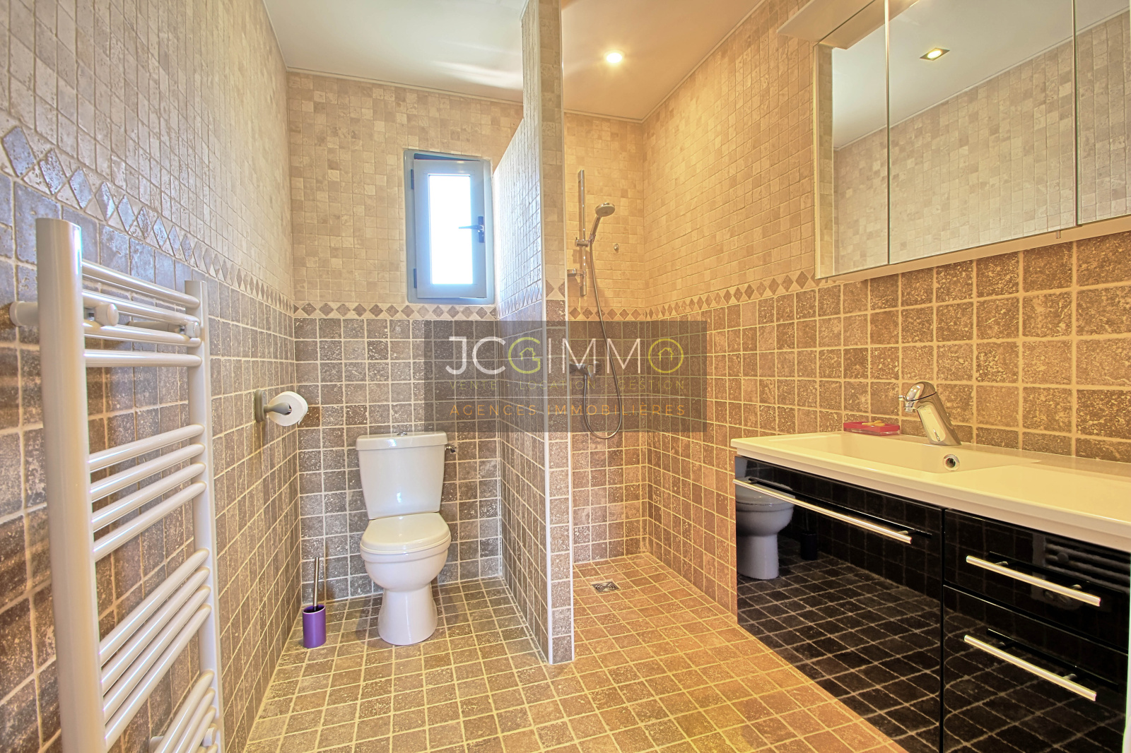PAS DE TRAVAUX A PREVOIR. La villa est en parfait état et très bien équipée haut de gamme : .Climatisation réversible dans toutes les pièces, Poêle à bois, Baies Galandage, double vitrage, oscillobattants, volets roulants électriques, visiophone, Cuisine aménagée, Piscine en dur, Arrosage automatique, FORAGE ! Eau de ville et Assainissement tout à l'égout ....