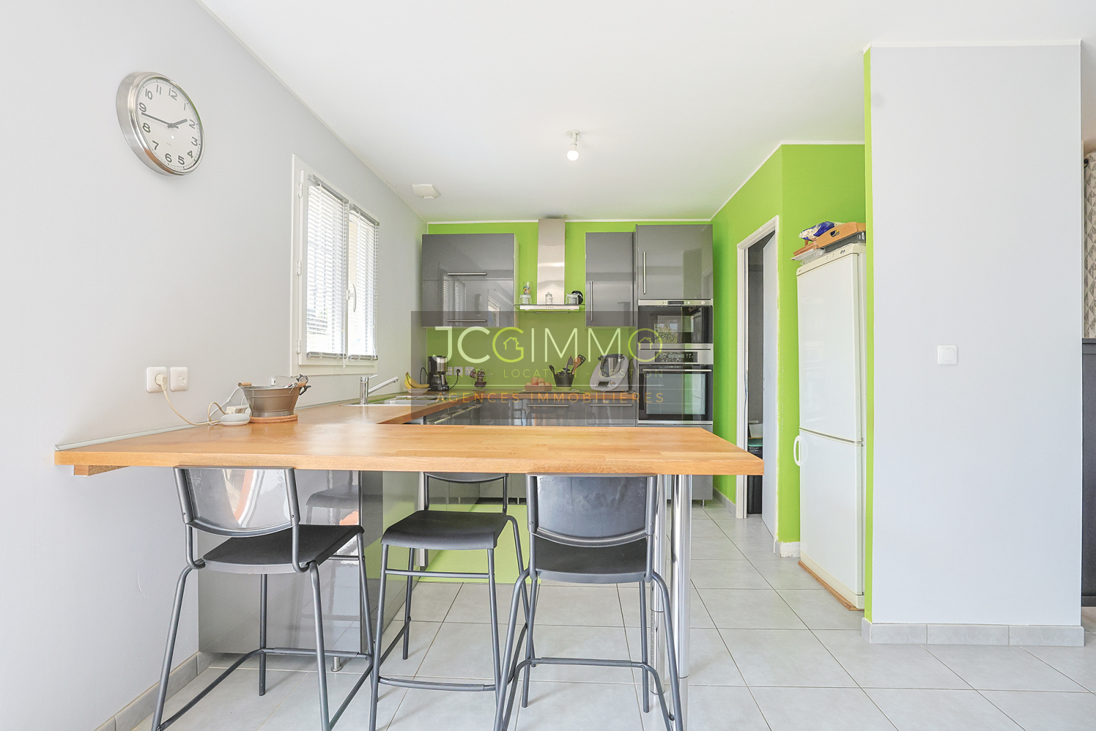 Maison T4 en RDC + 1 étage, d'une surface bien aménagée de 85m² avec en plus 20m² de garage, le tout édifié en 2015 sur un terrain entièrement plat et clos !
