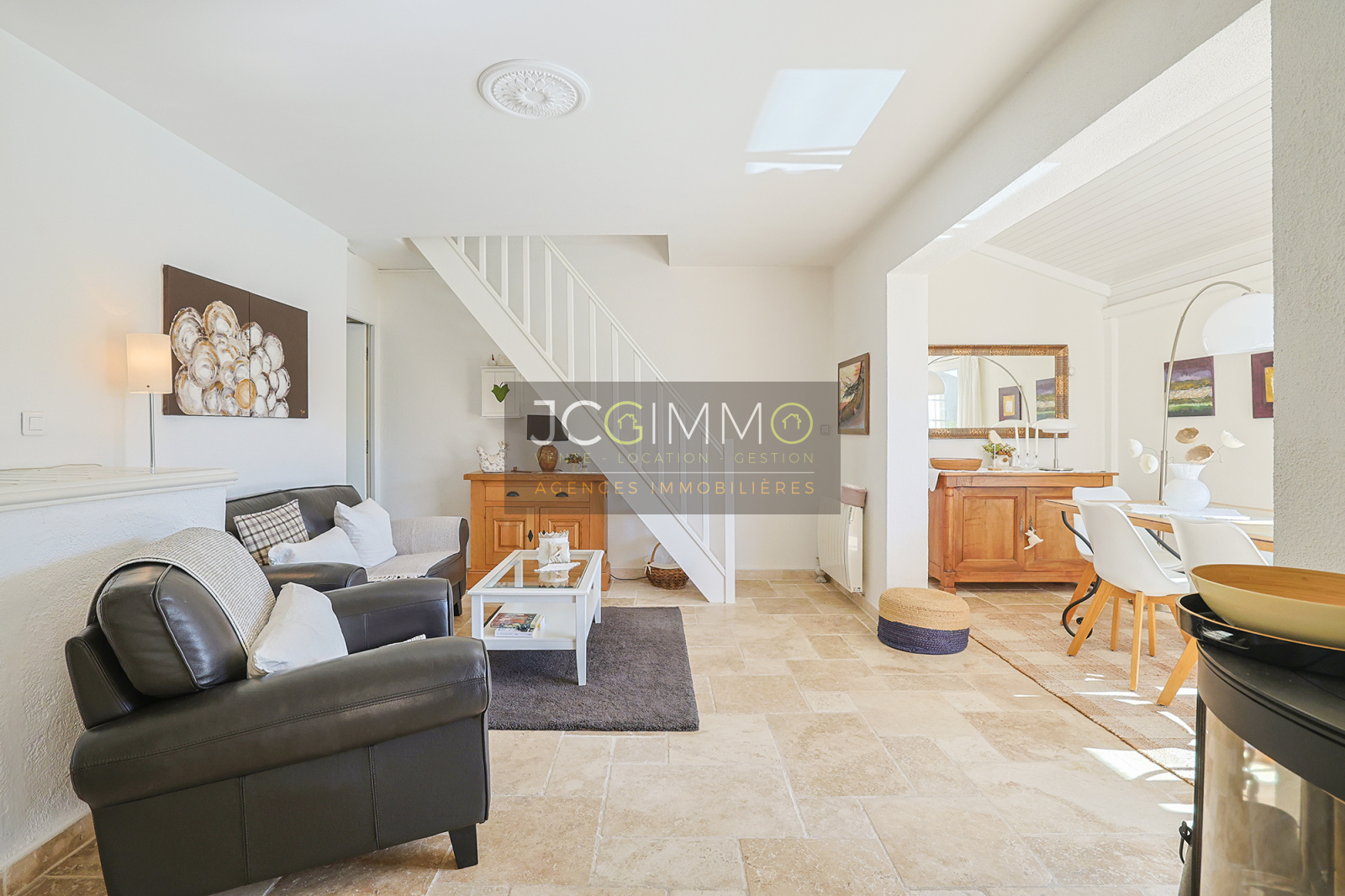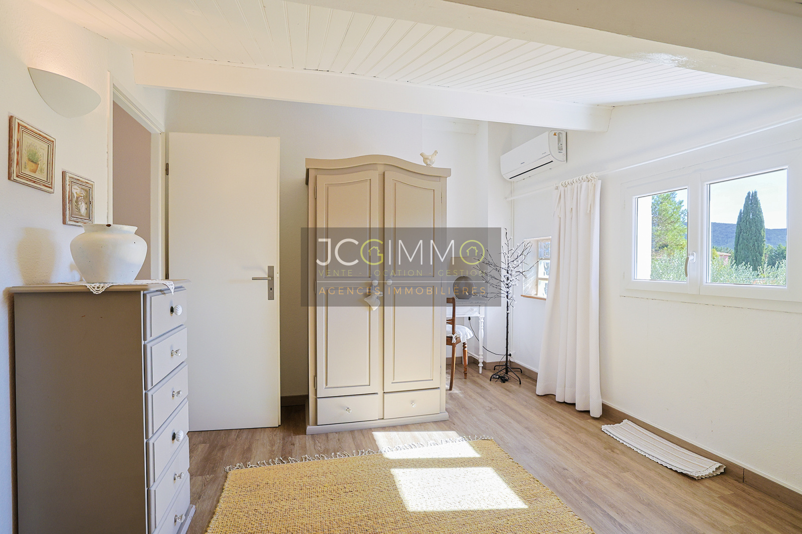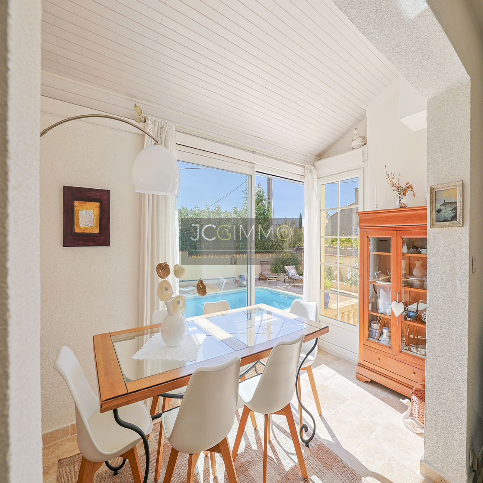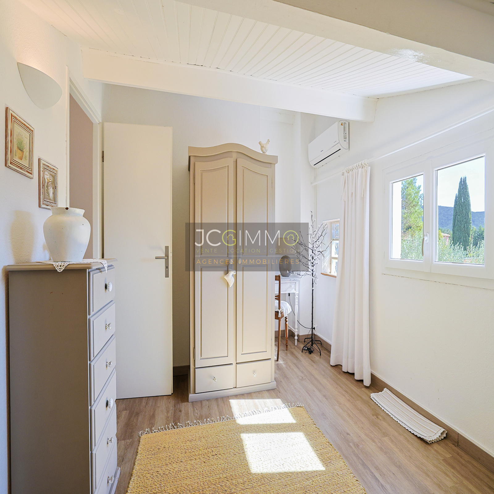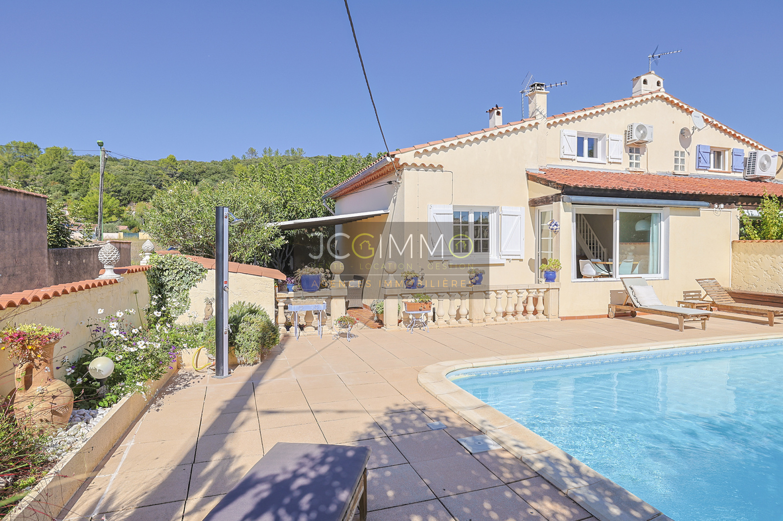 : Pignans, dans un secteur calme et sans nuisances, proche collines et commodités, retrouvez cette agréable maison T4 de 83 m2 hab en RDC + 1 étage comprenant stationnement intérieur, garage, terrain arboré avec terrasses et piscine.