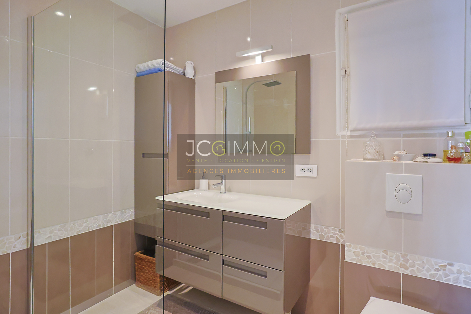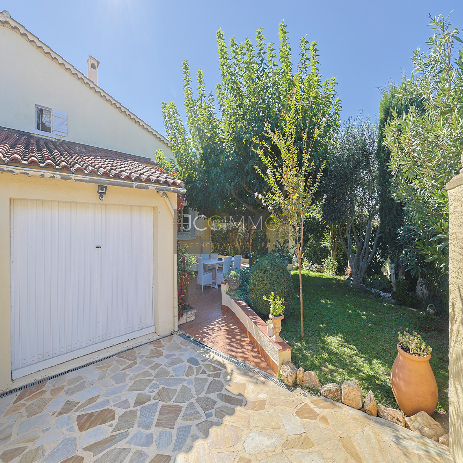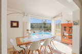Extérieur : un terrain plat, clos et bien arboré d’environ 376 m², 1 place de stationnement intérieur + garage de 14,5 m², piscine 7,3 / 3,8, nombreuses terrasses.