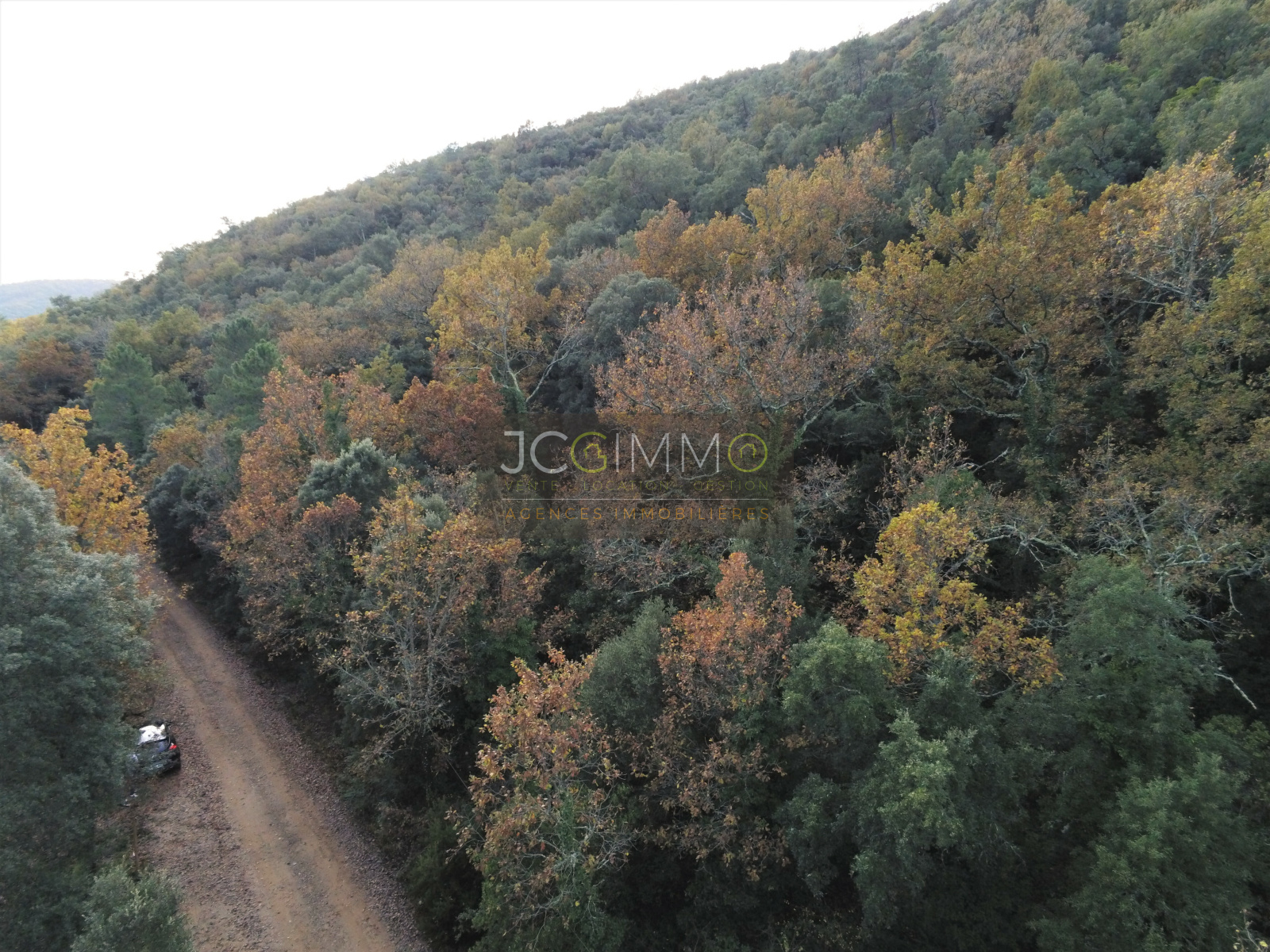 Dans un secteur calme, disposant d’un accès carrossable via une piste ce terrain arboré est exposé Nord / Est et a 40% de pente en moyenne.