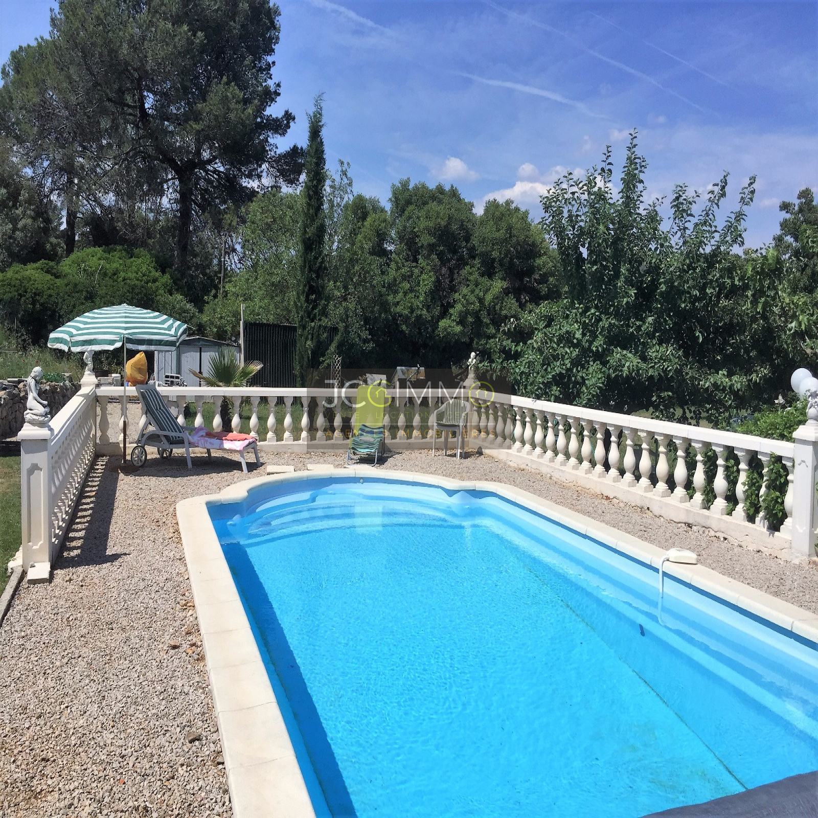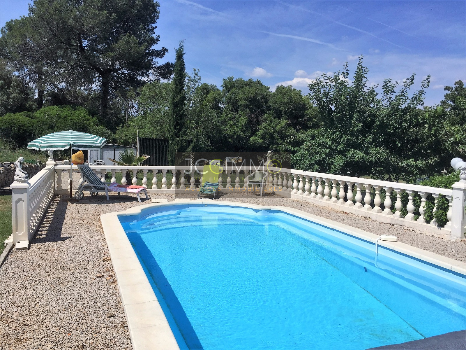 Pignans au plus grand calme sans vis à vis sur un terrain de 2500 m² avec une belle piscine et pool house, maison de plain pied d'environ 100 m² composée d'une belle pièce à vivre avec cuisine ouverte équipée, 2 chambres, 1 salle d'eau, 2 veranda dont une de 20 m² donnant sur la piscine, garage.
