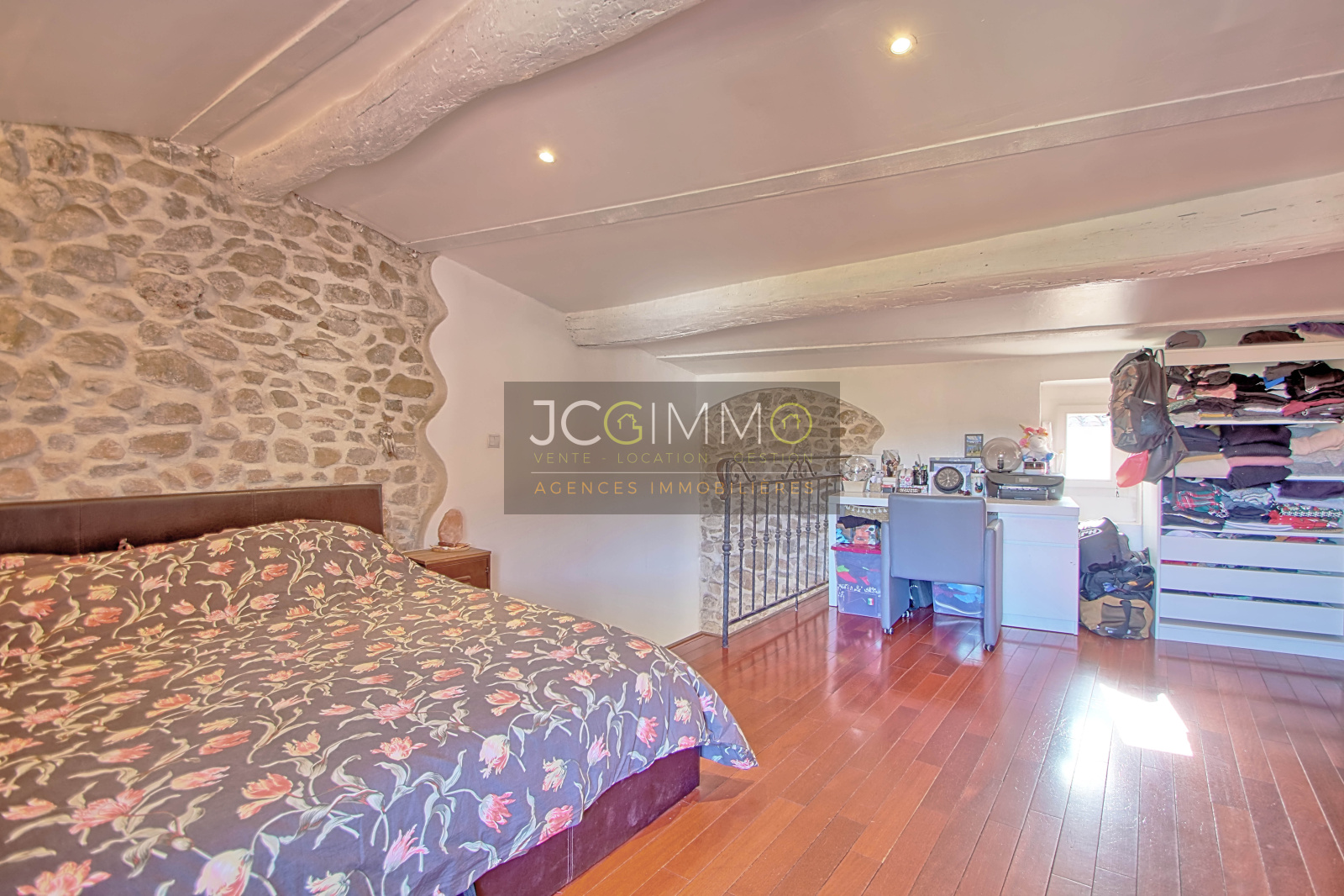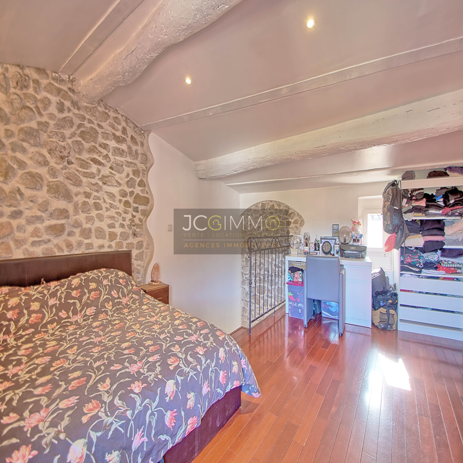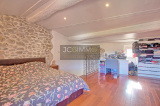 Au 2ème et dernier étage, d'une vaste chambre de 24m² avec mur en pierres apparentes.