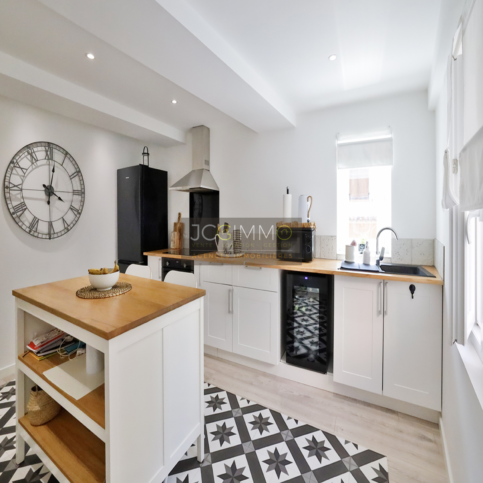 Prestations haut de gamme : Rénovation récente et complète avec des matériaux de qualités, cuisine neuve, salle d'eau et salle de bains neuves, carrelage contemporain, double vitrage PVC.