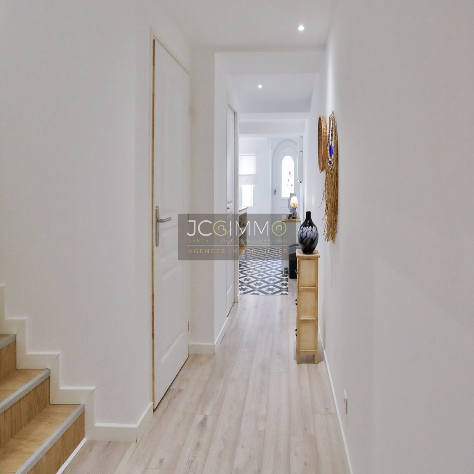 Totalement rénovée en 2021, cette maison en RDC + 2 étages, d’une surface de 115m² habitable T4 est composée :