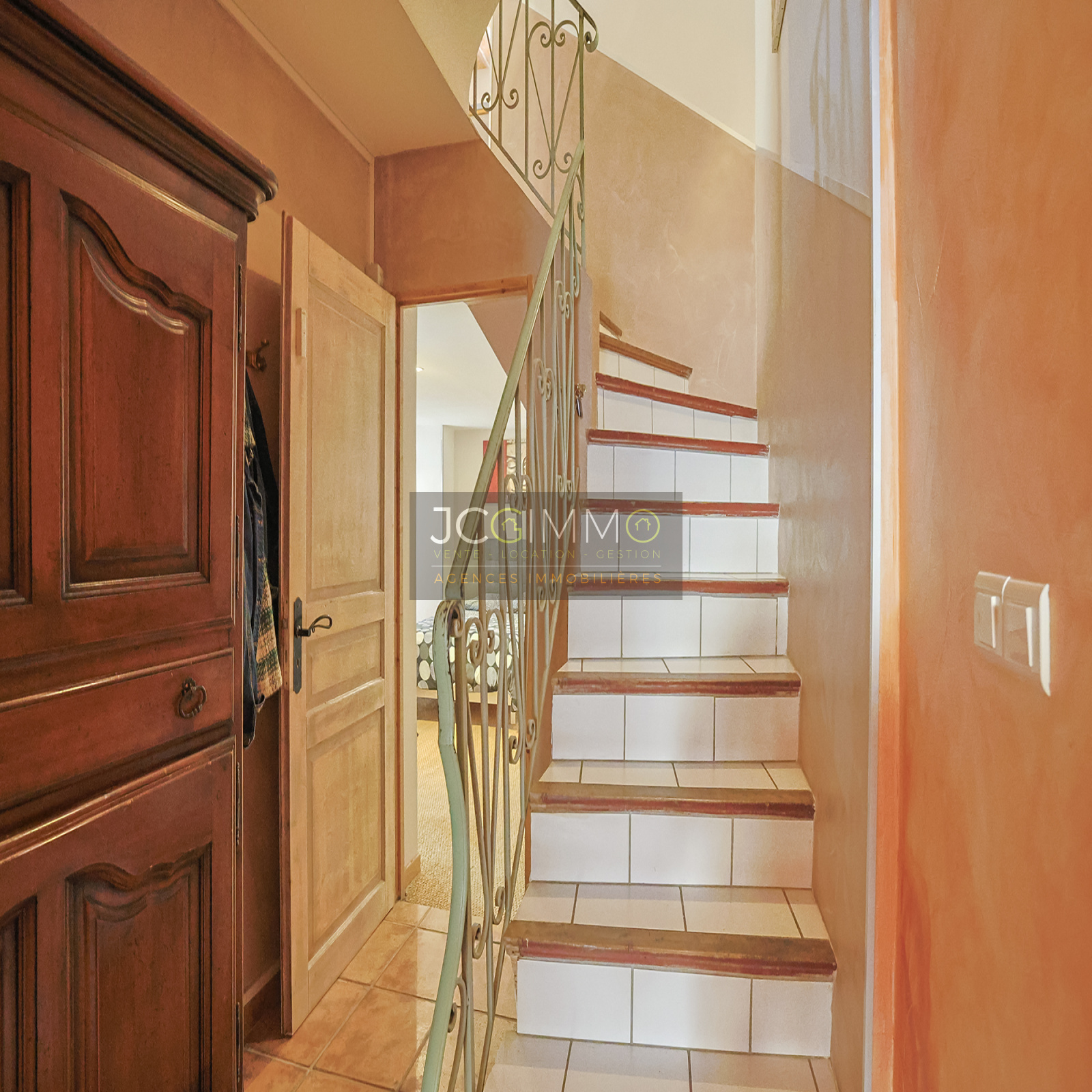 Vous allez être complètement séduit par le charme, le cachet et les prestations de cette maison de ville T5 de 113 m2 Habitable. La maison est parfaitement entretenue, Lumineuse et très agréable à vivre. Elle est implantée en plein coeur du village offrant, en plus de l'habitation, un garage de 25 m2 pouvant accueillir 1 véhicule ainsi qu'une magnifique terrasse d'environ 27 m2 dédié à la détente, aux bains de soleil et aux barbecues entre amis, c'est un petit coin de Paradis !. D'une surface habitable d'environ 113 m2 de type T5, elle se compose d'un rez de chaussée comprenant une entrée, une suite parentale d'environ 17 m2 avec une petite salle d'eau avec douche et wc, d'un garage. D'un 1er étage composé d'une pièce de vie d'environ 39 m2, comprenant un séjour avec une cuisine US aménagée et équipée donnant sur la terrasse et d'une salle de bains avec wc. D'un 2ème étage comprenant un palier, un grand dressing, 3 chambres dont une avec un wc. Vous n'aurez qu'à poser vos valises et profiter, il ne manque rien !. À proximité de toutes les commodités, commerces, écoles, stationnements, c'est un véritable Coup de Coeur. Prestation de qualités (double vitrage pvc, climatisation réversible, porte de garage motorisée...)
