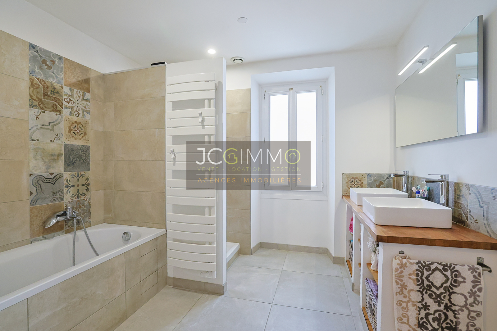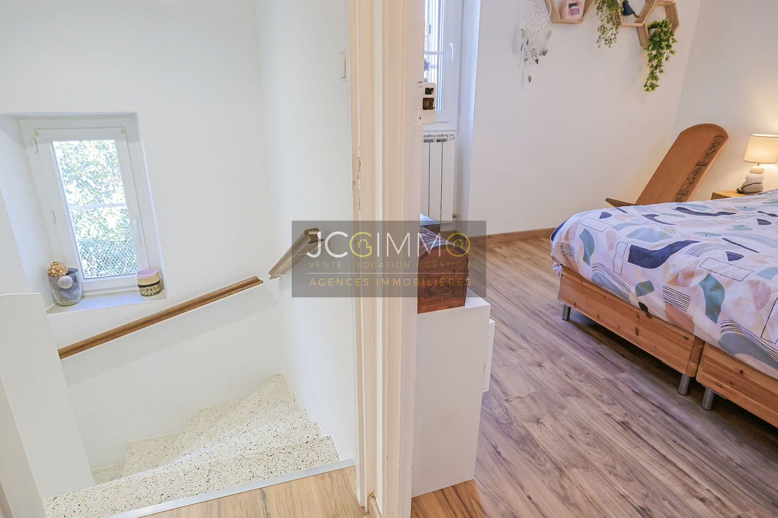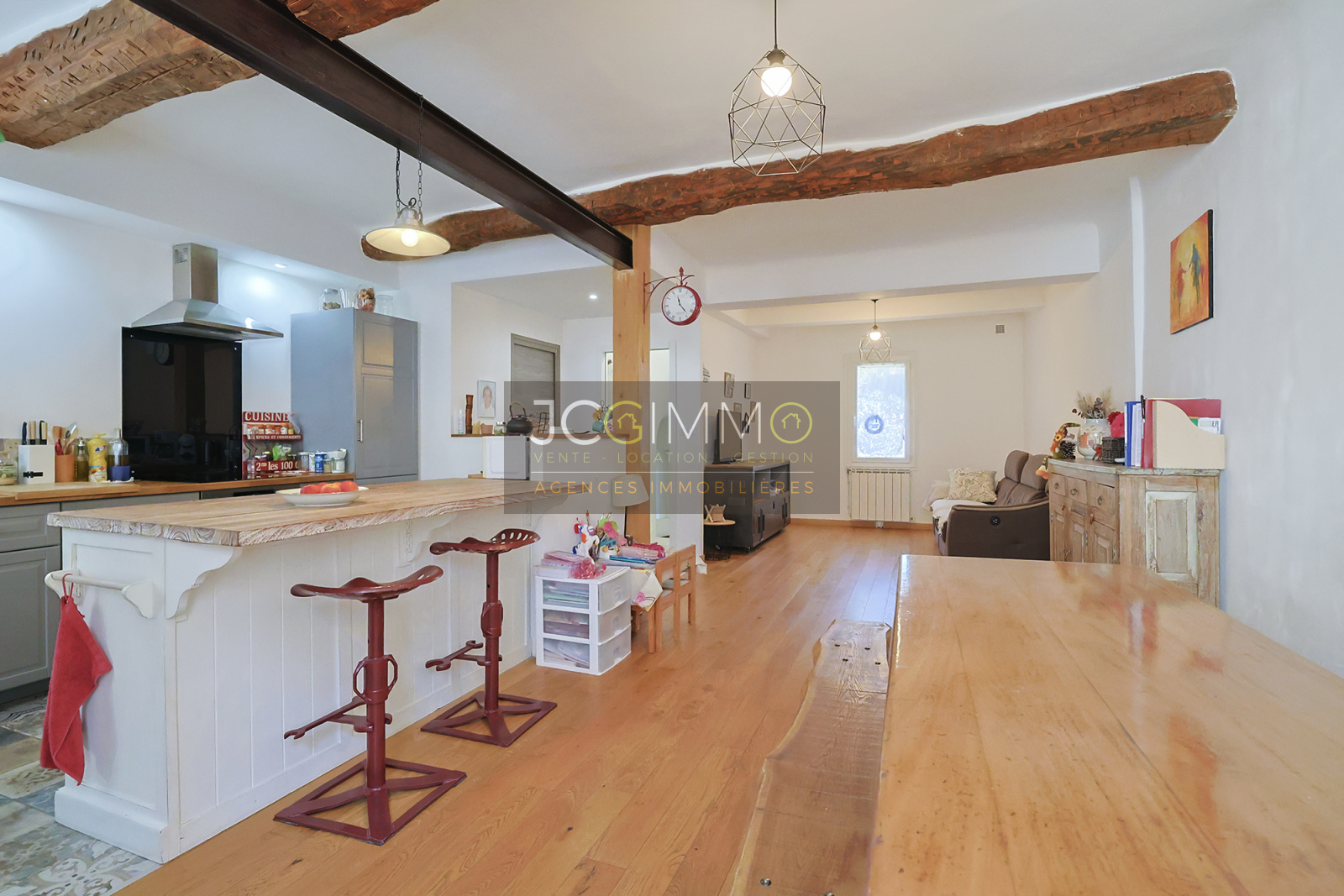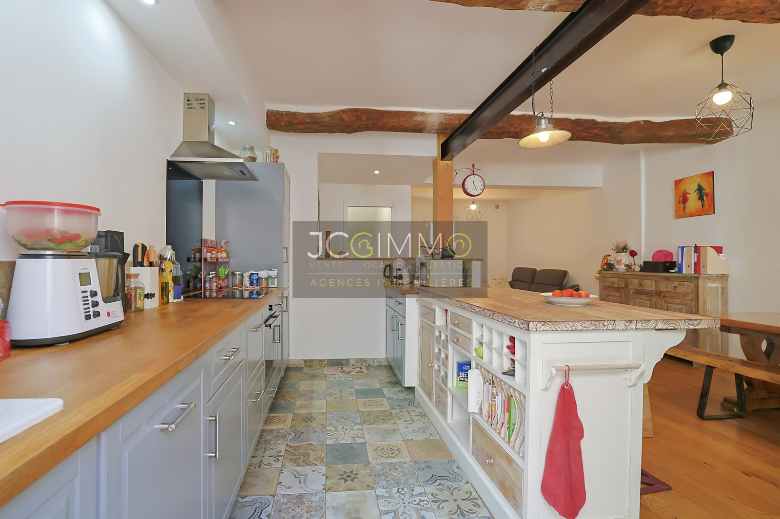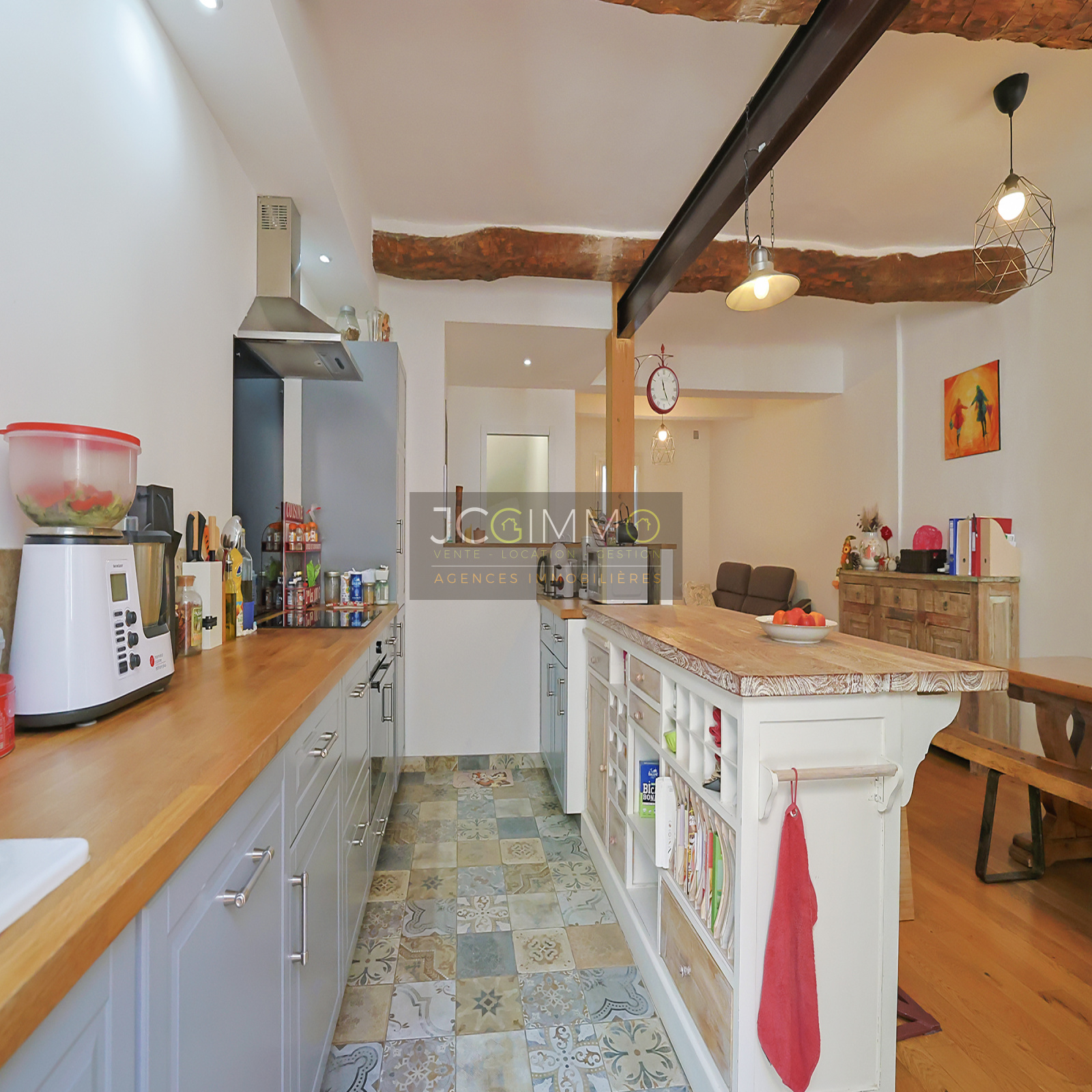Vous allez être complètement séduit par le charme, le cachet et les prestations de cette maison de ville T3 de 96 M2 Habitable. La maison est parfaitement entretenue, Lumineuse et très agréable à vivre. Elle est idéalement située en plein coeur du village, dans une rue calme, offrant en plus de l'habitation, un garage de plus de 40 m2 pouvant accueillir 2 véhicules ainsi qu'un joli petit balcon. D'une surface habitable d'environ 96 m2 de type T3, pouvant facilement redevenir un T4 ! elle se compose d'un rez de chaussée comprenant un hall d'entrée avec placard, et un vaste garage avec une très belle hauteur sous plafond. D'un étage composé d'une pièce de vie d'environ 44 m2, comprenant un séjour, une salle à manger, une cuisine US aménagée et équipée donnant sur un balcon de 5 m2 et un wc. D'un 2 ème étage qui se compose d'un dégagement, de 2 grandes chambres, d'un dressing, d'un wc indépendant et d'une vaste salle de bains de plus de 8 m2 avec douche et baignoire. Vous n'aurez qu'à poser vos valises et profiter, il ne manque rien !. À proximité de toutes les commodités, commerces, écoles, stationnements, c'est un véritable Coup de Coeur. Prestation de qualités (double vitrage pvc, climatisation réversible ... )