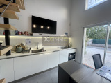 Plain-pied : Une pièce de vie lumineuse avec 3 accès extérieurs, un vide sur séjour donnant une belle hauteur sous plafond et une cuisine ouverte récente.