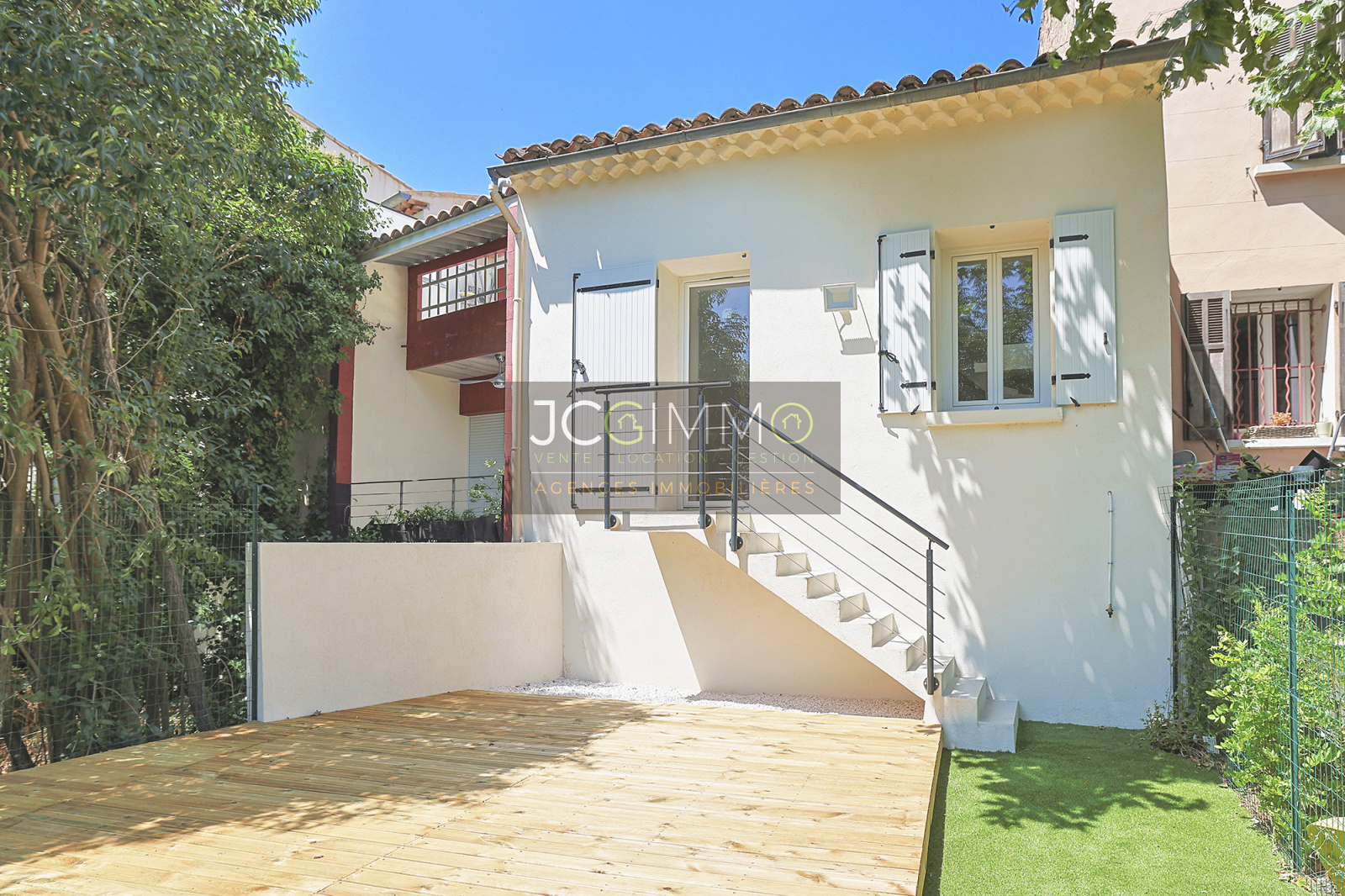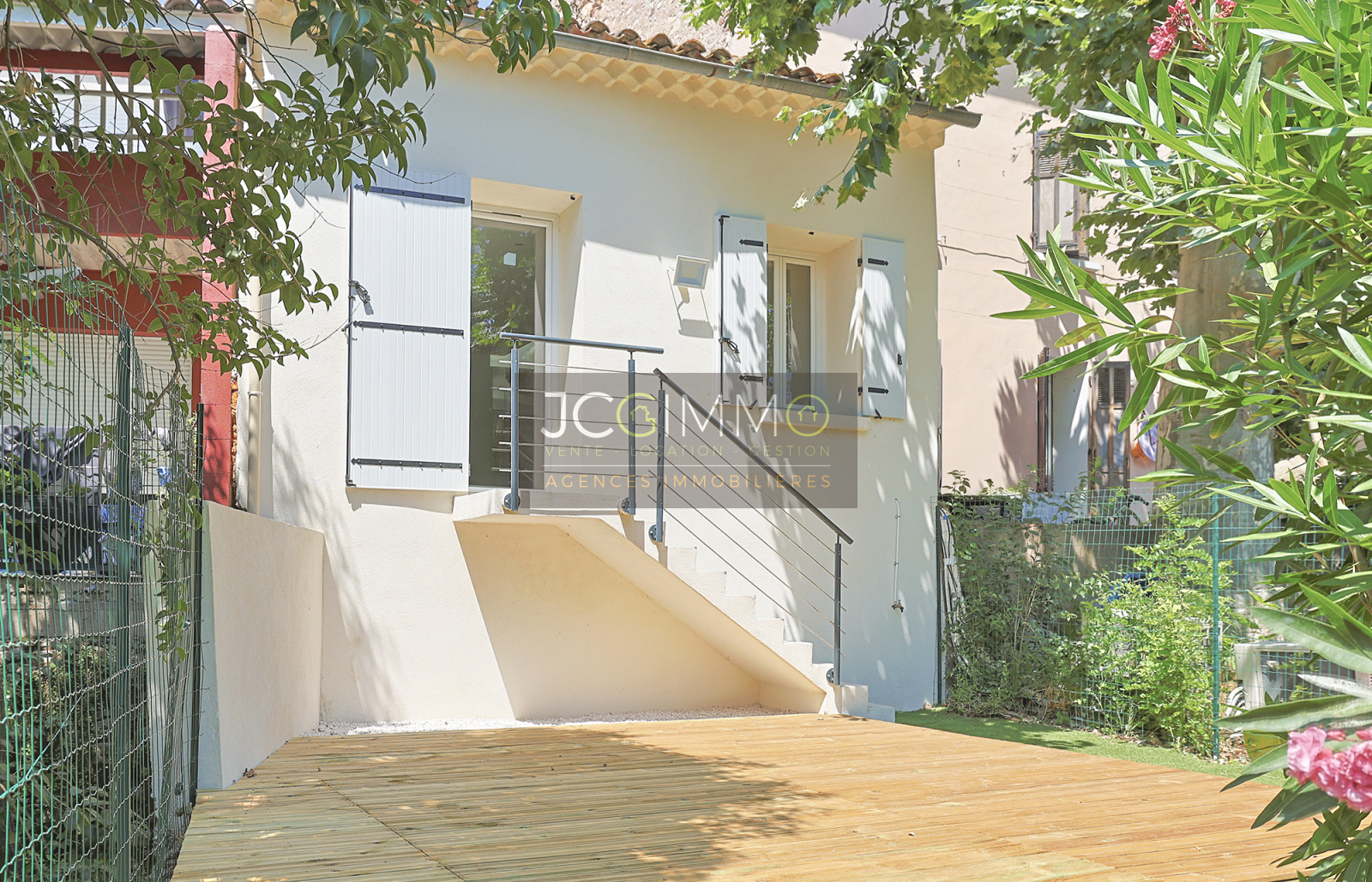 PUGET-VILLE : Nous sommes fiers de vous présenter cette maison de village entièrement rénovée de 73m² habitables T3 avec jardin et terrasse. Elle est située au cœur du village, proche de toutes les commodités et des parkings communaux. Elle se compose au rez-de-chaussée d'une entrée, d'un séjour / cuisine US donnant sur l'extérieur, d'un WC indépendant et d'une pièce avec volet roulant électrique donnant sur la rue permettant de stationner un véhicule 2 roues. À l'étage, 2 chambres de 10,30m² et 18m² en partie mansardée, et une salle d'eau avec WC. À l'extérieur, une terrasse en bois de 25m² et un bel espace en gazon synthétique. Véritable création, cette maison vient d'être rénovée totalement et encore jamais habitée.