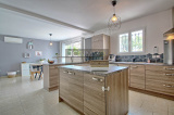 À l'extérieur, d'une terrasse avec cuisine d'été, d'un garage avec mezzanine de rangement (porte sectionnelle motorisée) et d'un stationnement intérieur (portail motorisé).