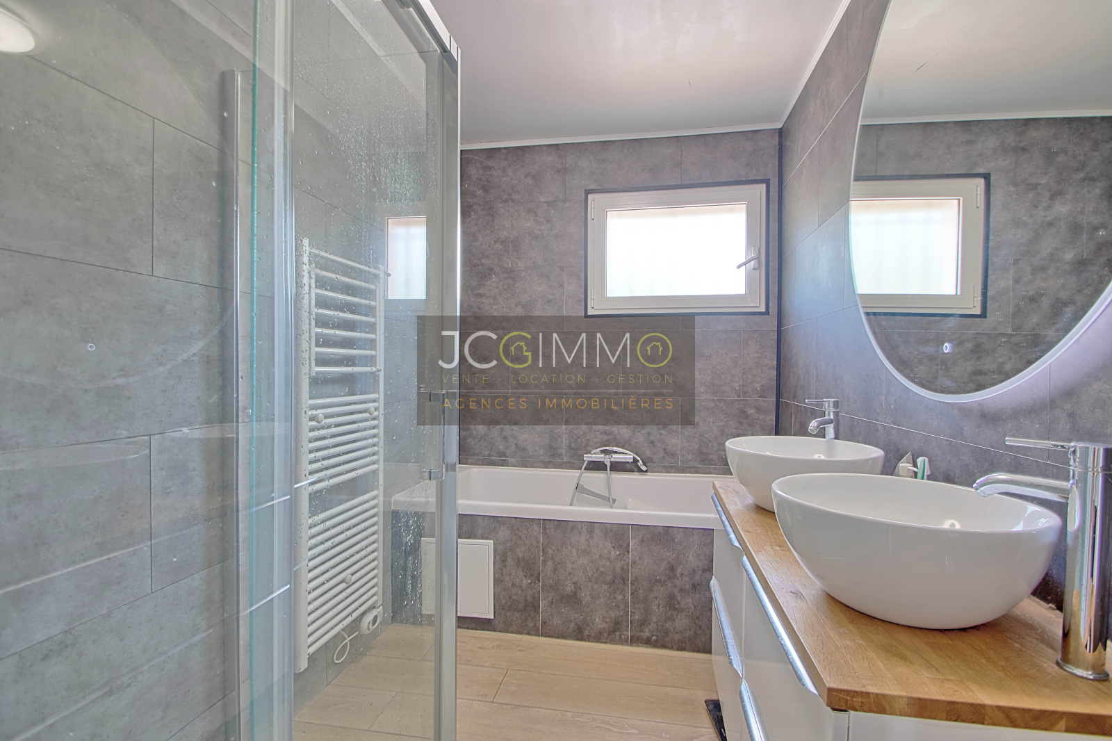 JCG IMMOBILIER vous propose cette belle villa rénovée T4 de PLAIN-PIED de 88m² habitable sur un terrain PLAT et CLOS de 530m² avec PISCINE CHAUFFÉE au coeur d'un secteur calme proche du centre du village !