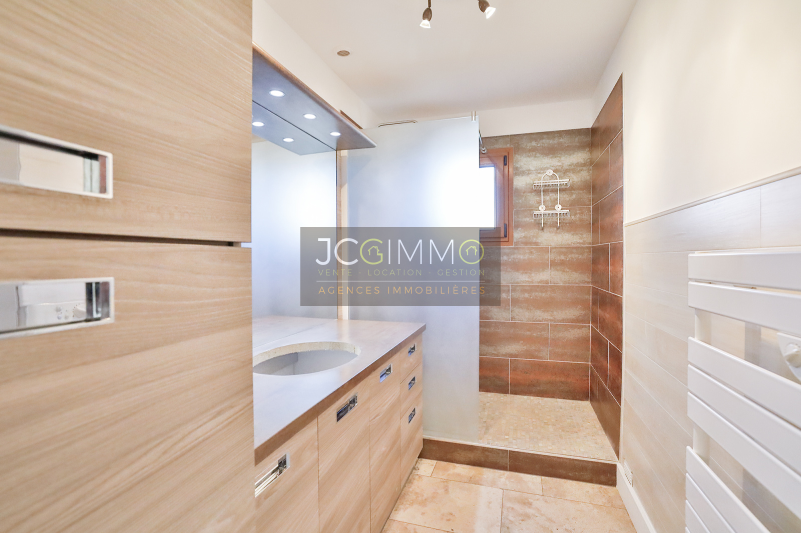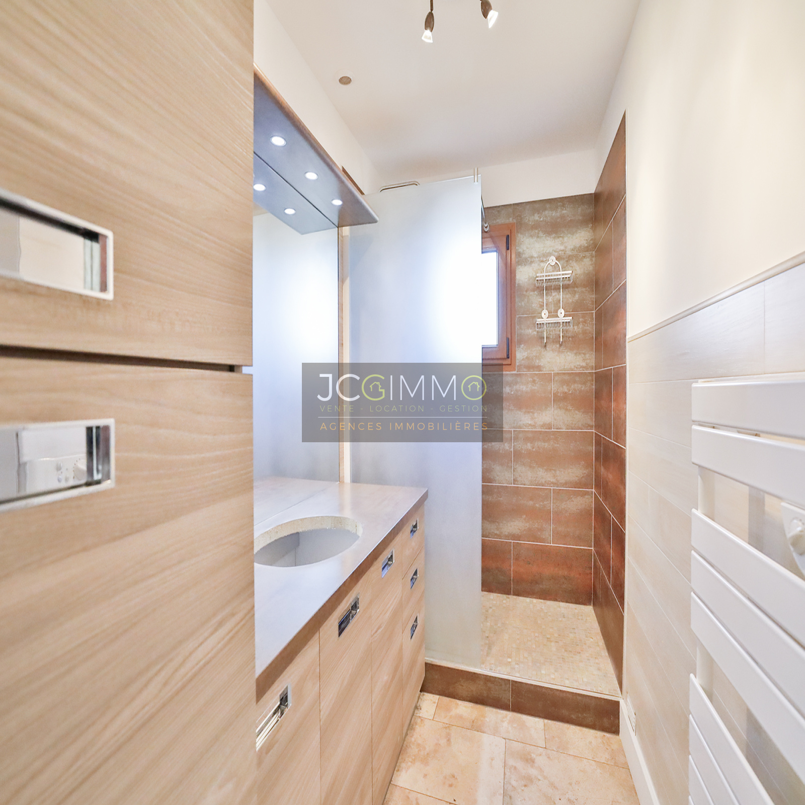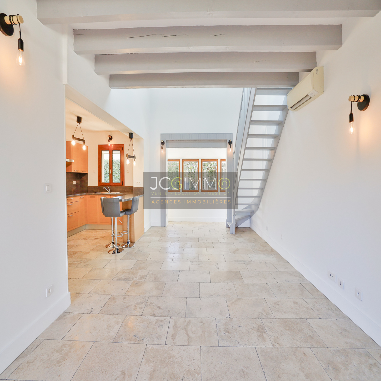 Au rez-de-chaussée, profitez d'un espace de vie lumineux de 47m² comprenant entrée, séjour, salon et cuisine US équipée. Deux chambres climatisées, une salle d'eau avec douche italienne, un WC indépendant ainsi qu'une buanderie complètent ce niveau.