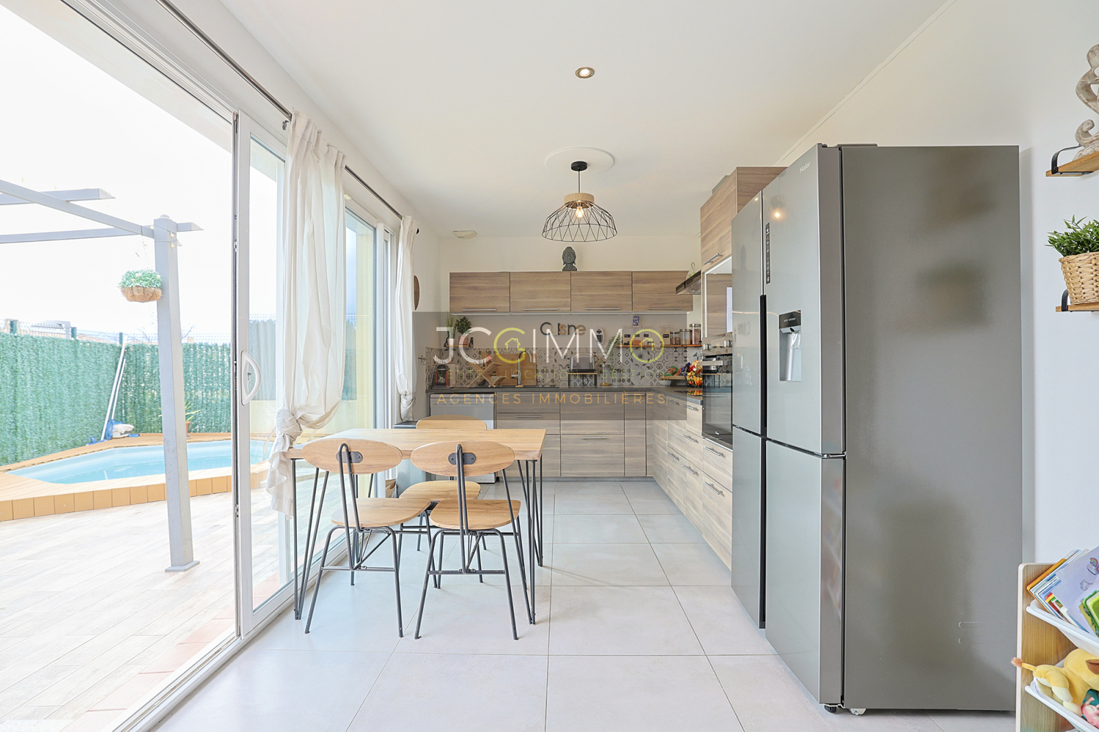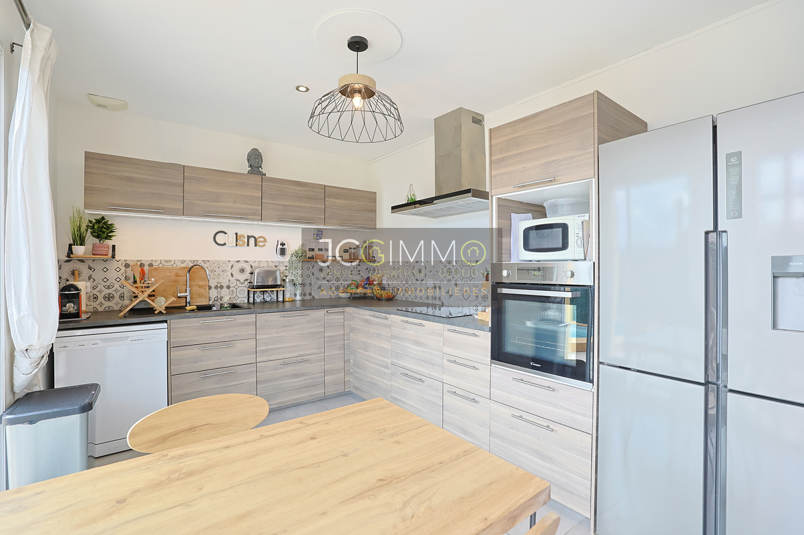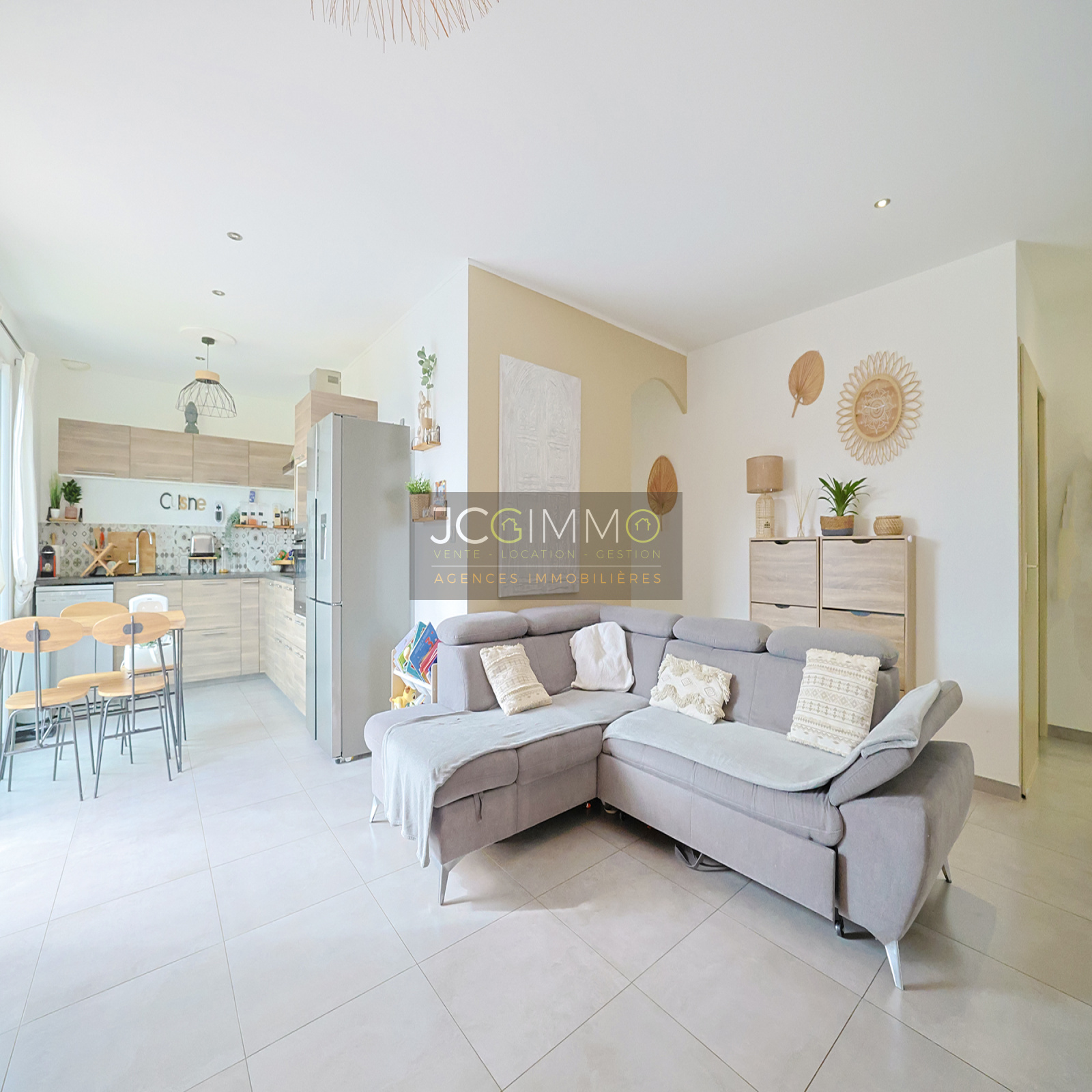 À l'intérieur, Entrée, Pièce de vie de 33m², avec Cuisine US moderne et Séjour donnant sur la terrasse, Dégagement, 3 agréables Chambres, Salle d'eau et WC indépendant.