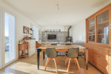 Au 1er étage : une terrasse entourant la pièce de vie composée d'un salon, d'une salle à manger et d'une cuisine moderne, puis un dégagement deservant deux premières chambres, une salle de bains et un WC.